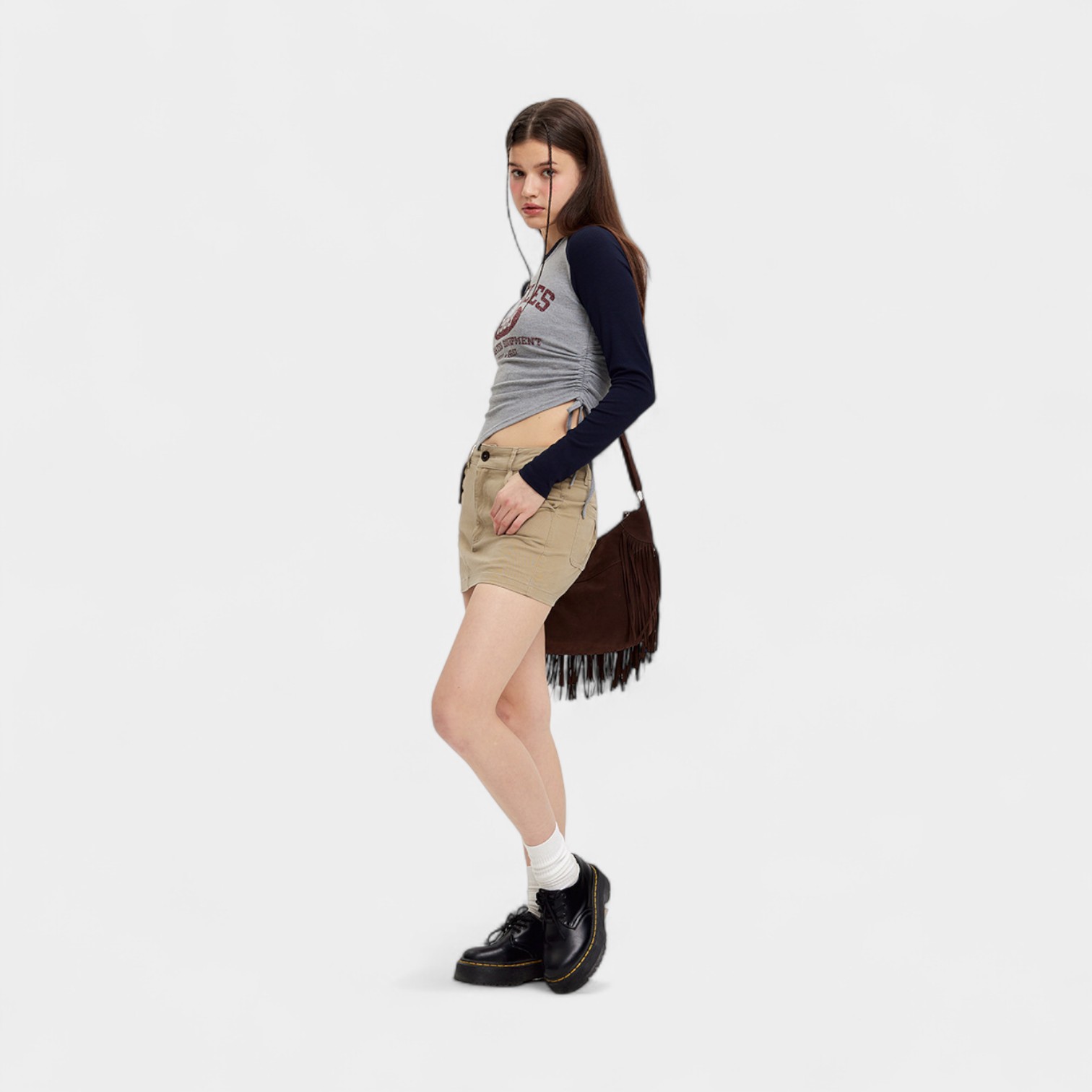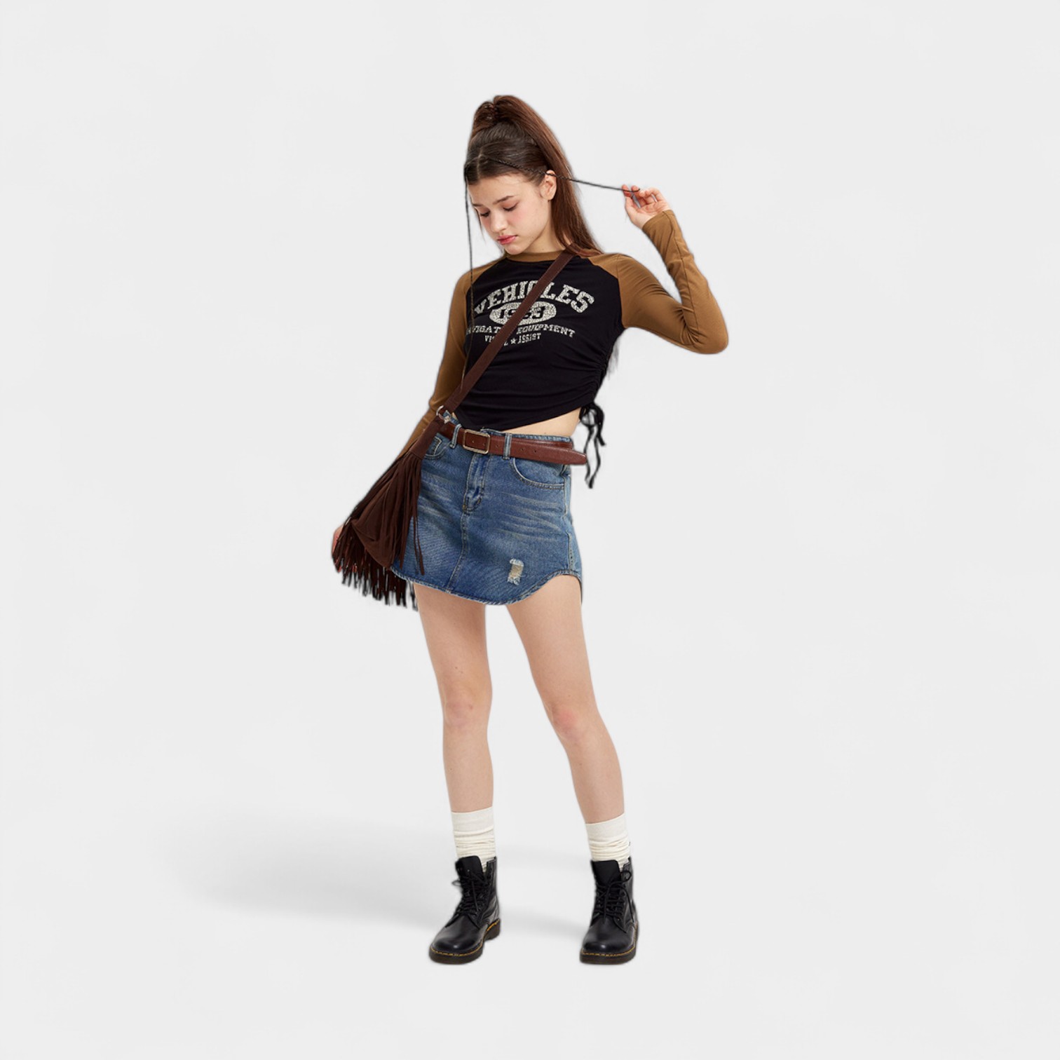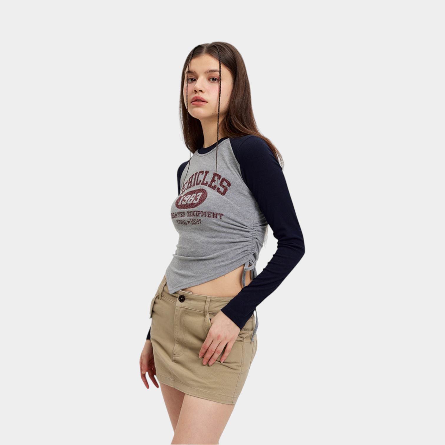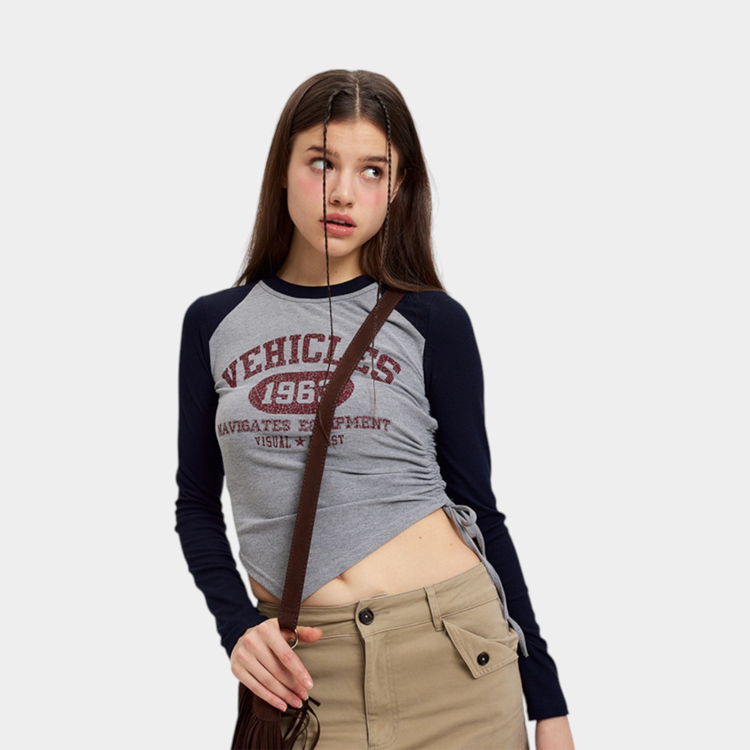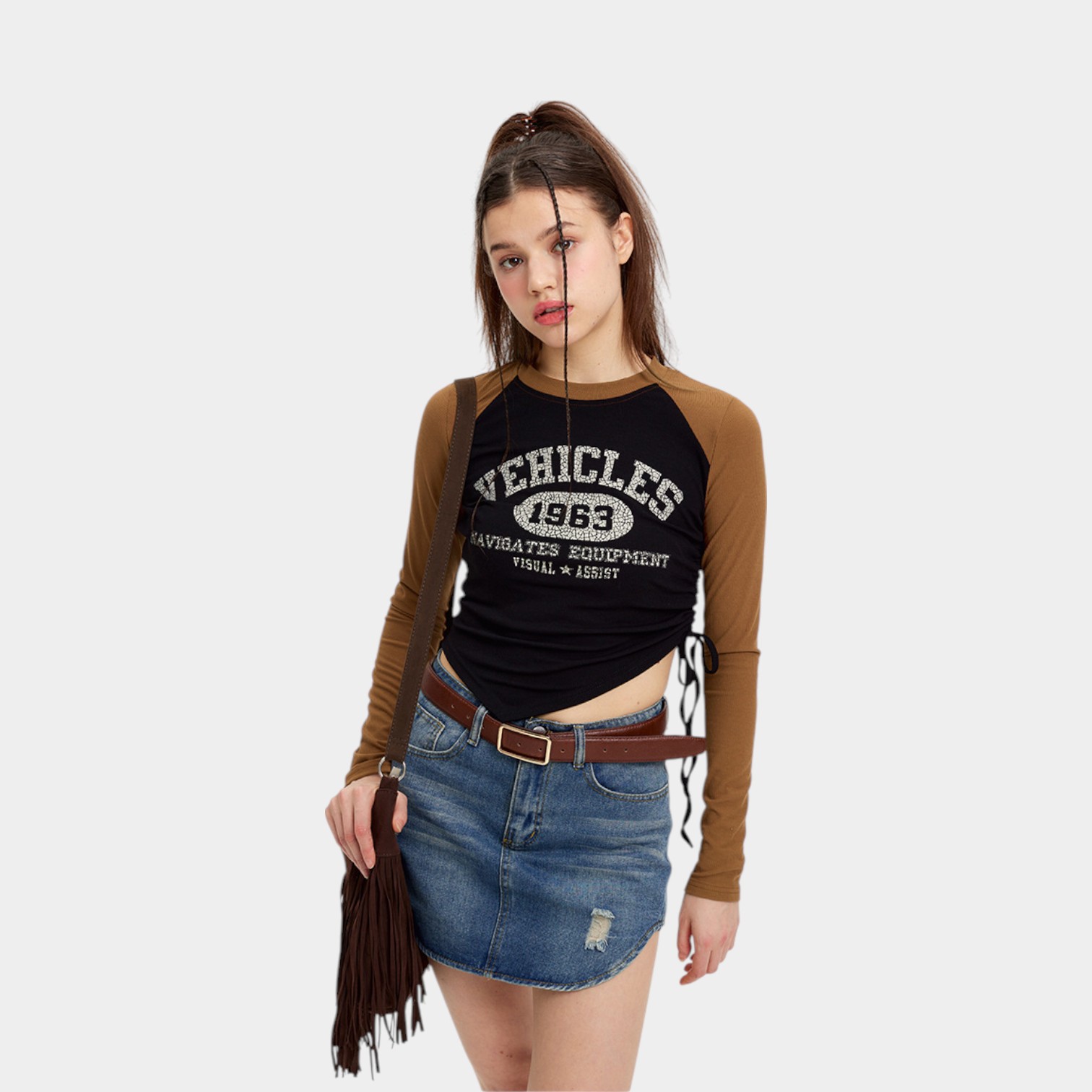 Damen Crop Top mit Textdruck und langen Ärmeln