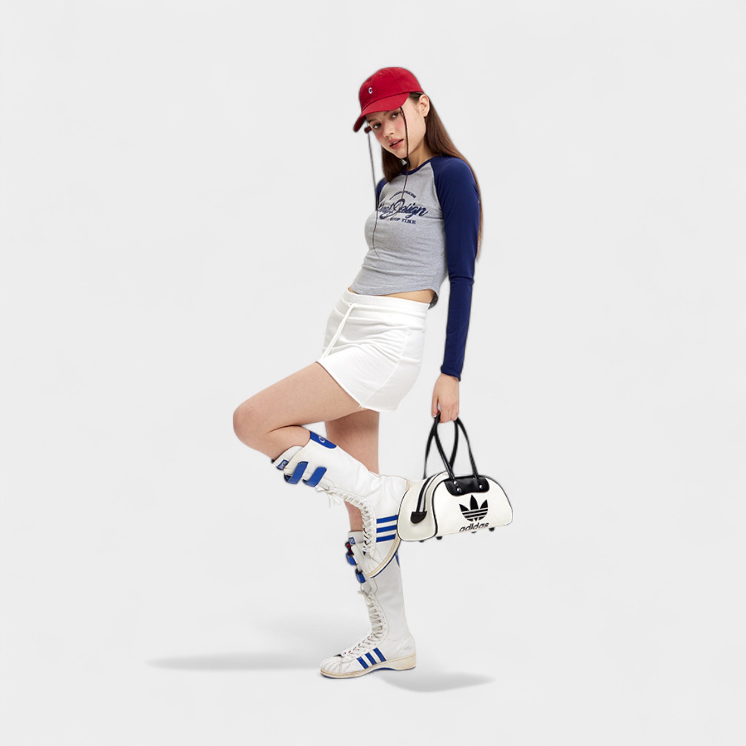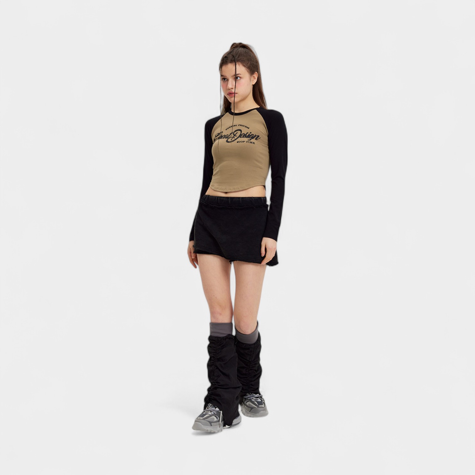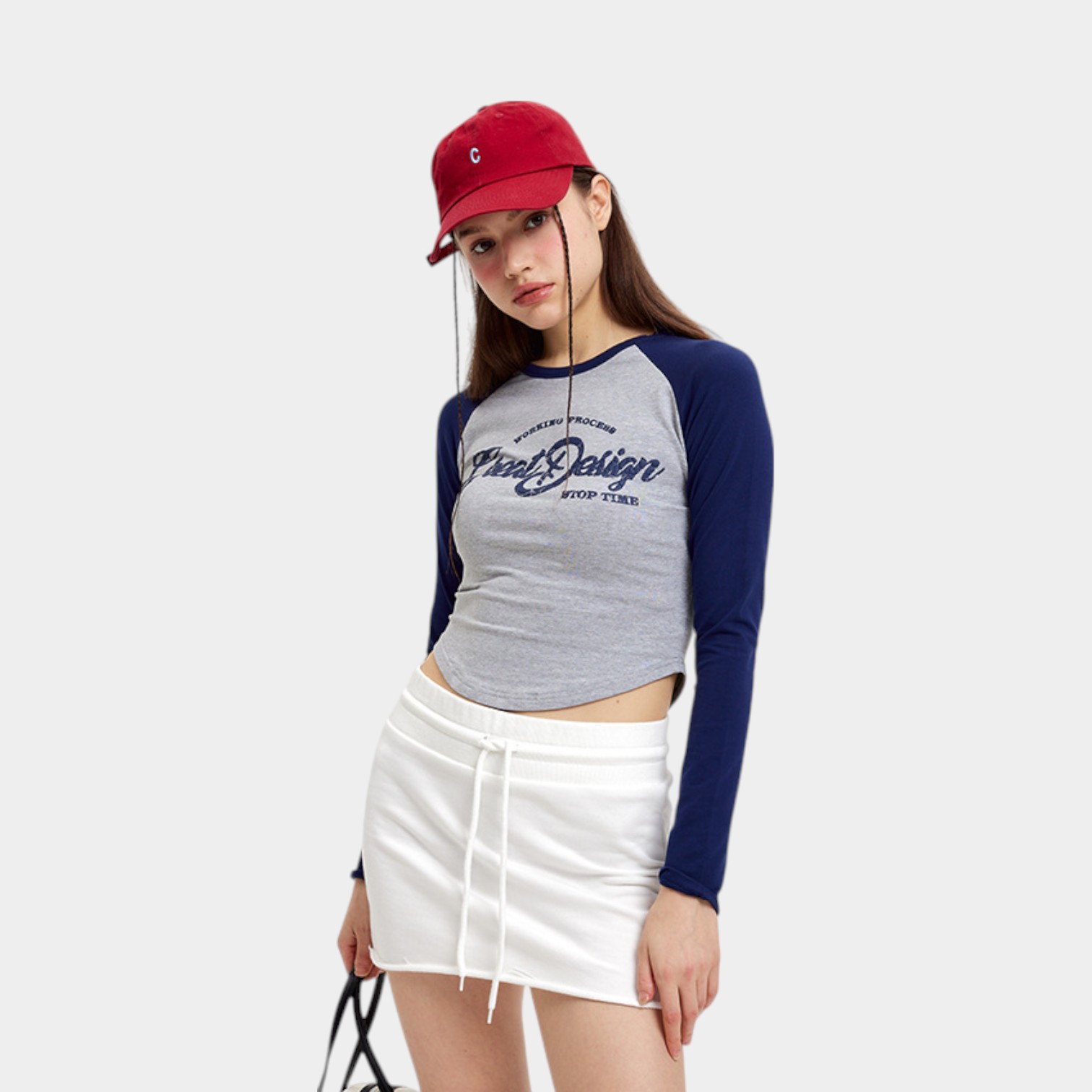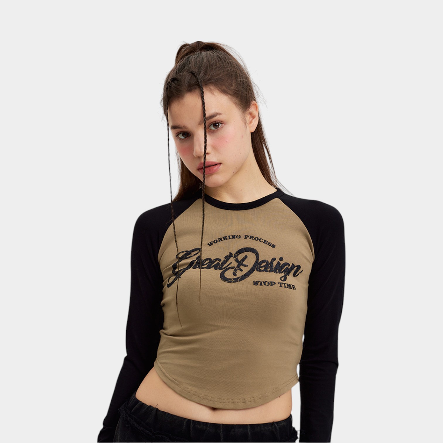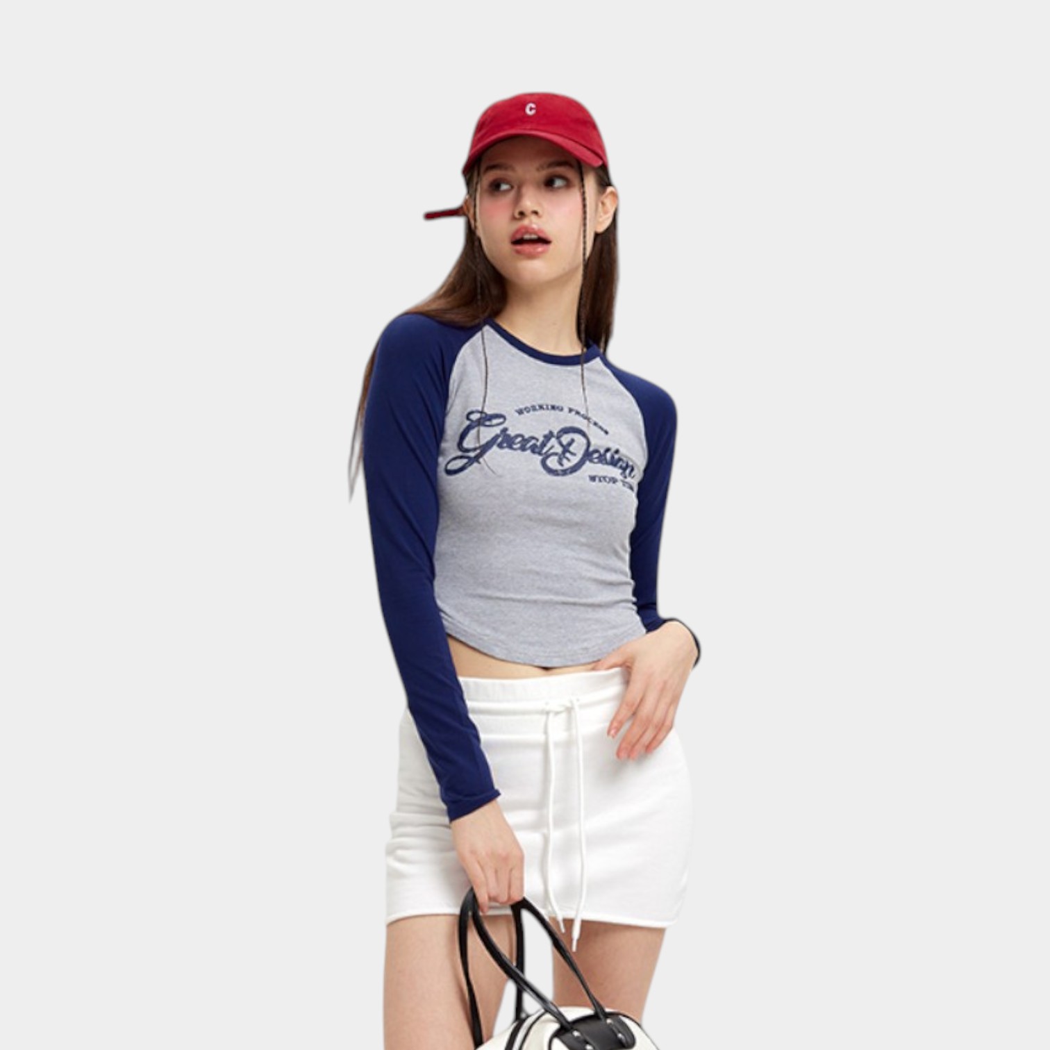Damen Crop Top mit Textdruck und langen Ärmeln