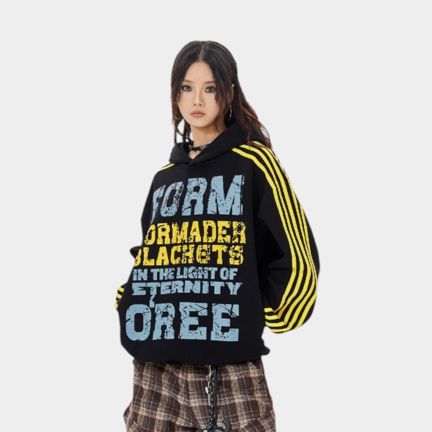 Dieser gestreifte, übergroße Hoodie mit Kängurutasche ist perfekt für gemütliche Wochenendausflüge oder entspannte Freizeit.