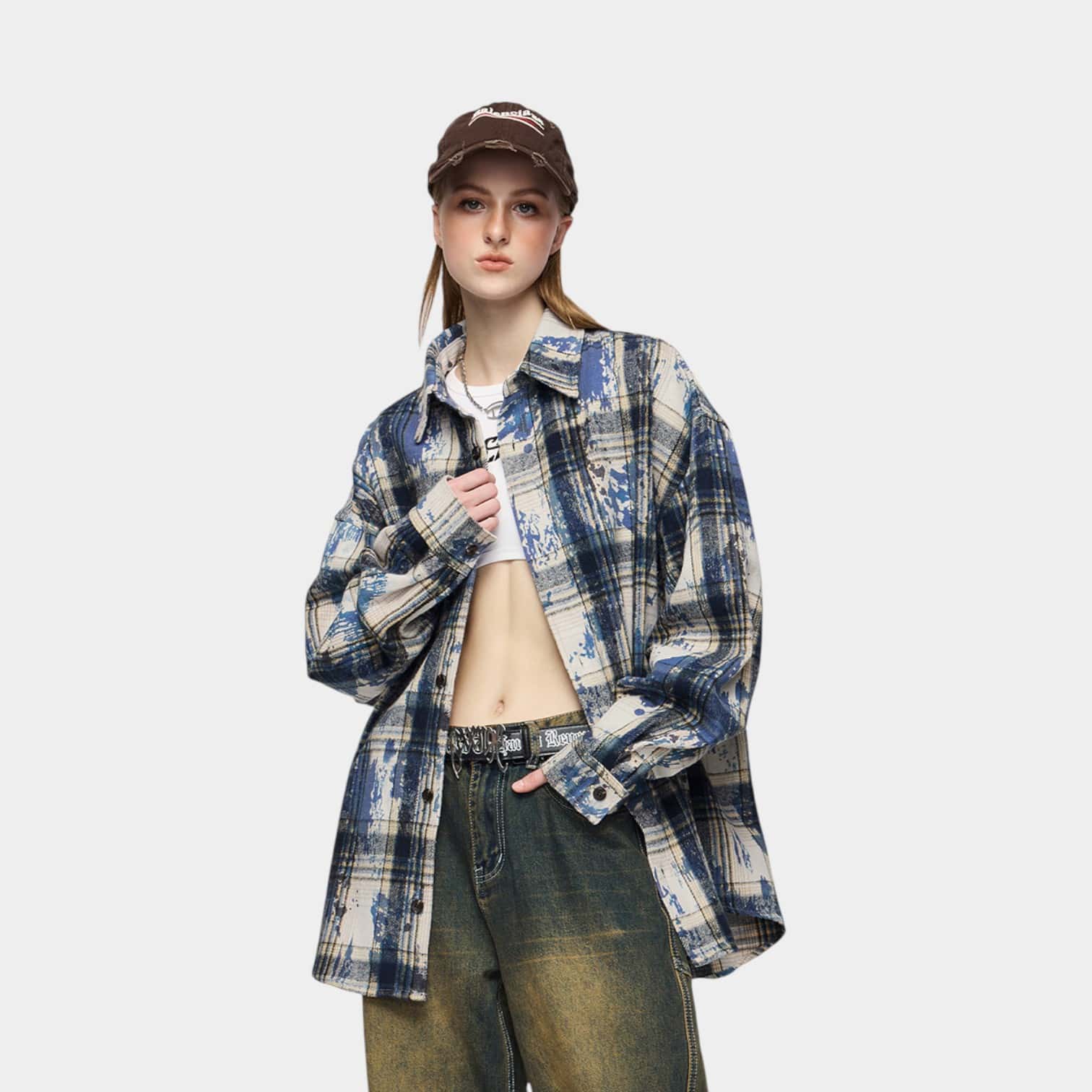 Dieses übergroße karierte Hemd mit Taschen ist perfekt für bequeme Alltagskleidung oder stilvolle, lässige Ausflüge.