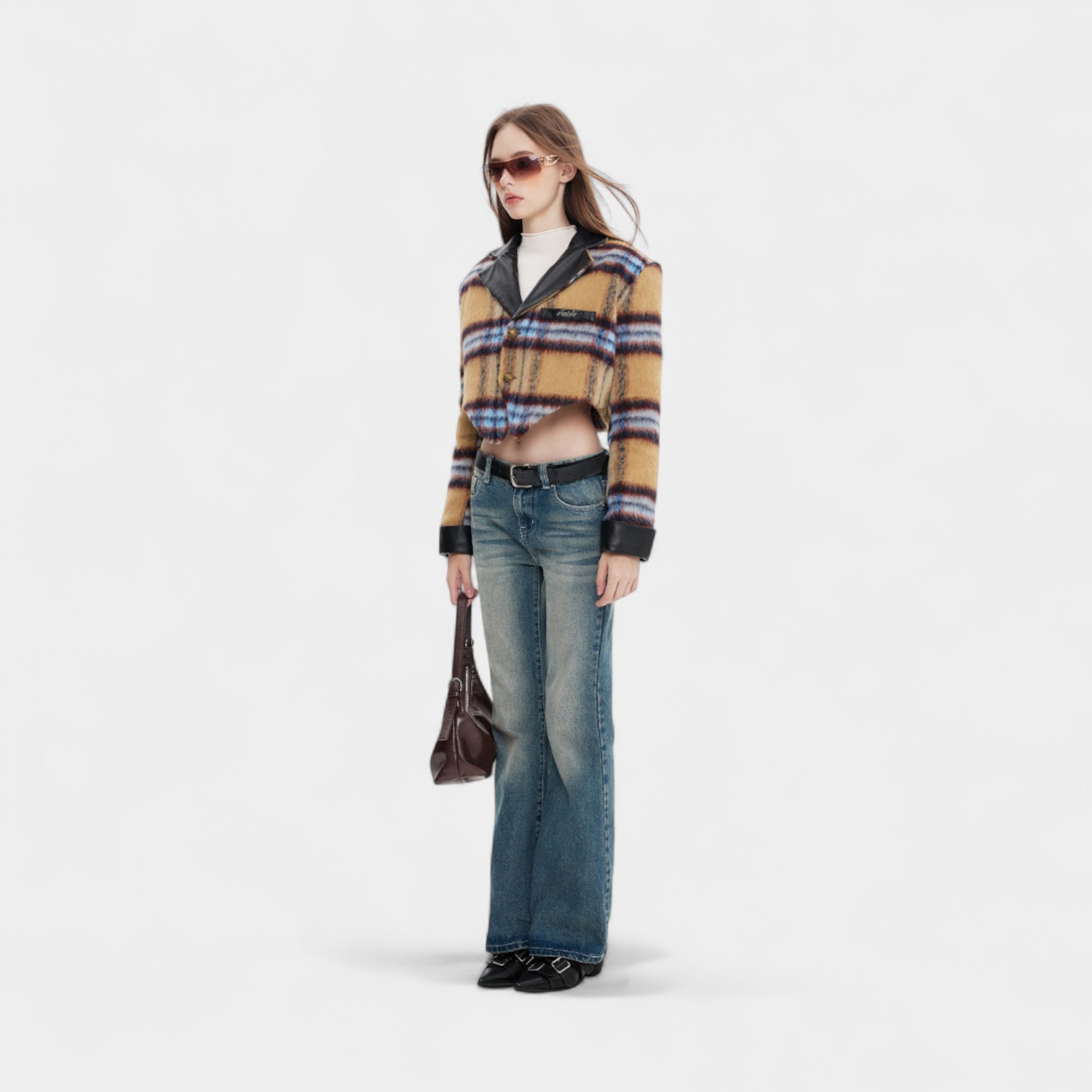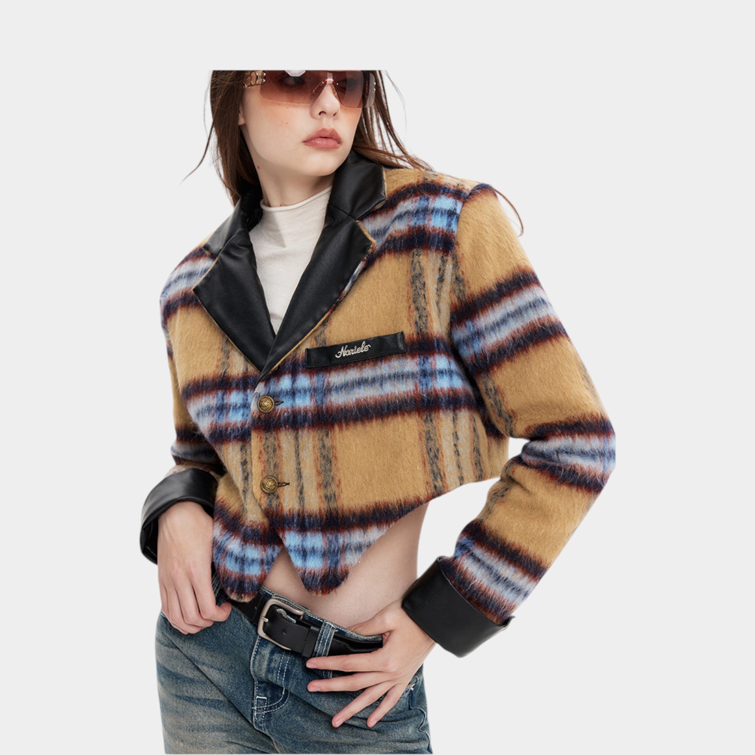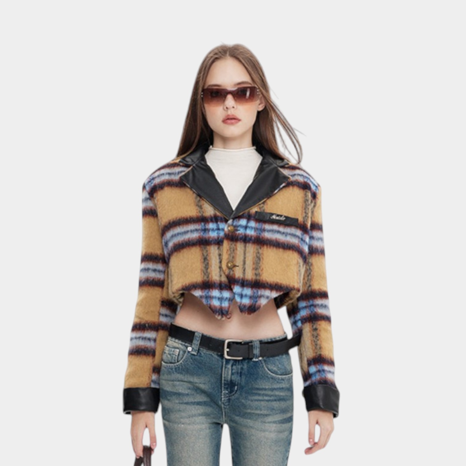 Damen Mantel mit Karomuster und langen Ärmeln