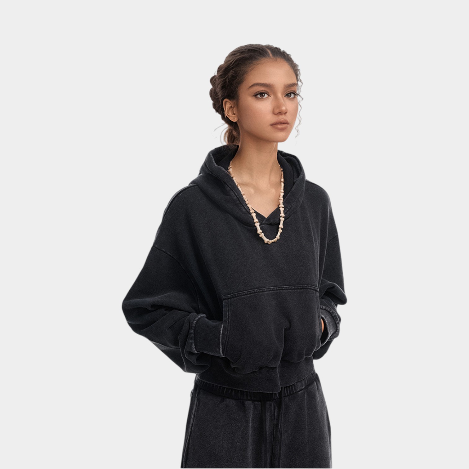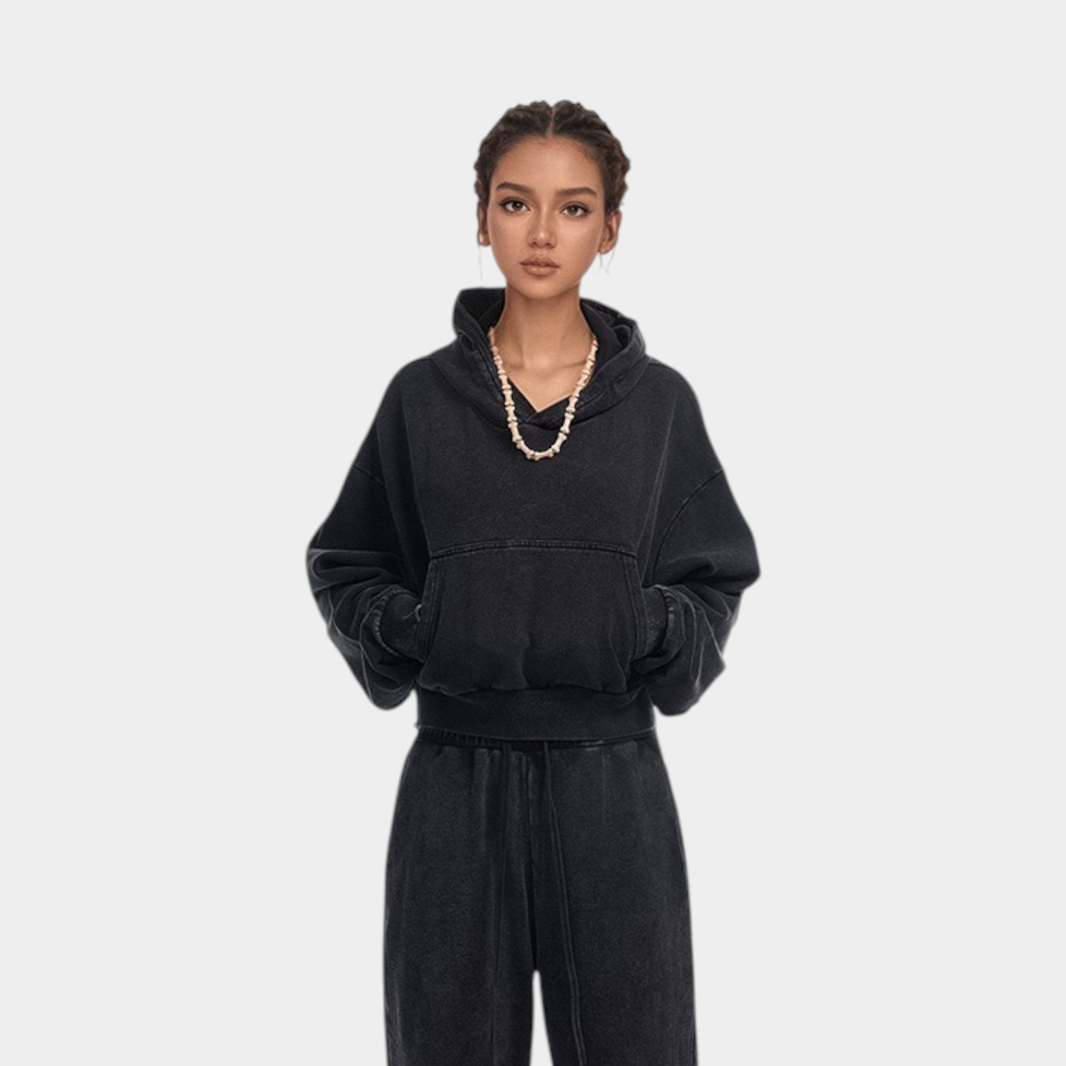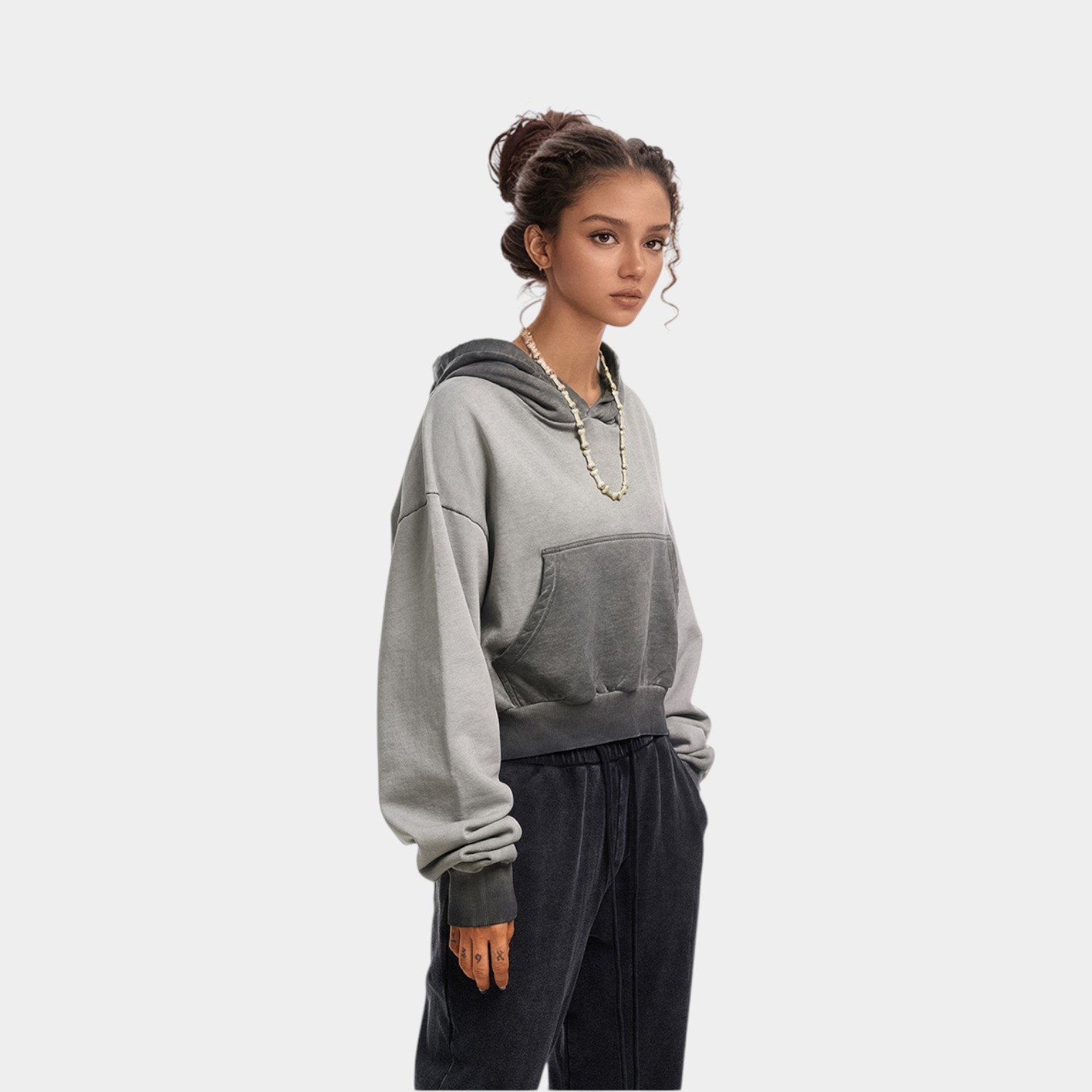 Dieser übergroße Damen-Hoodie mit Kängurutasche und bequemen Bündchen ist perfekt für entspannte Umgebungen oder lässige Wochenendausflüge.