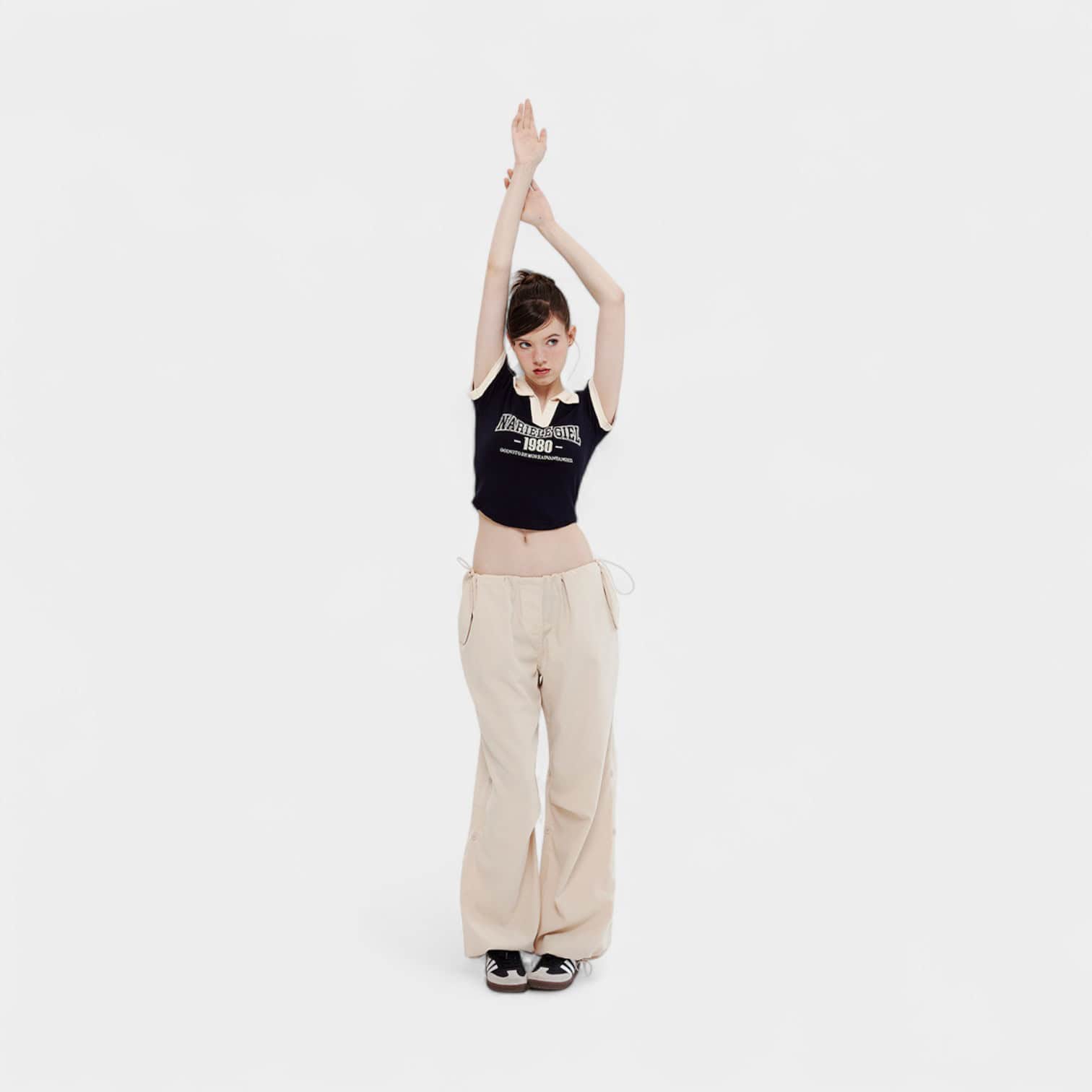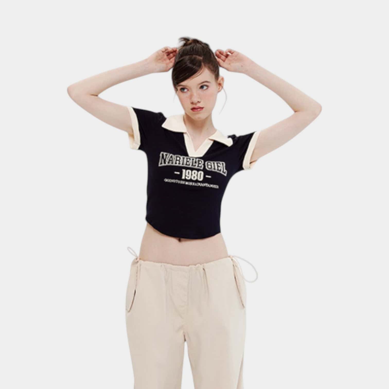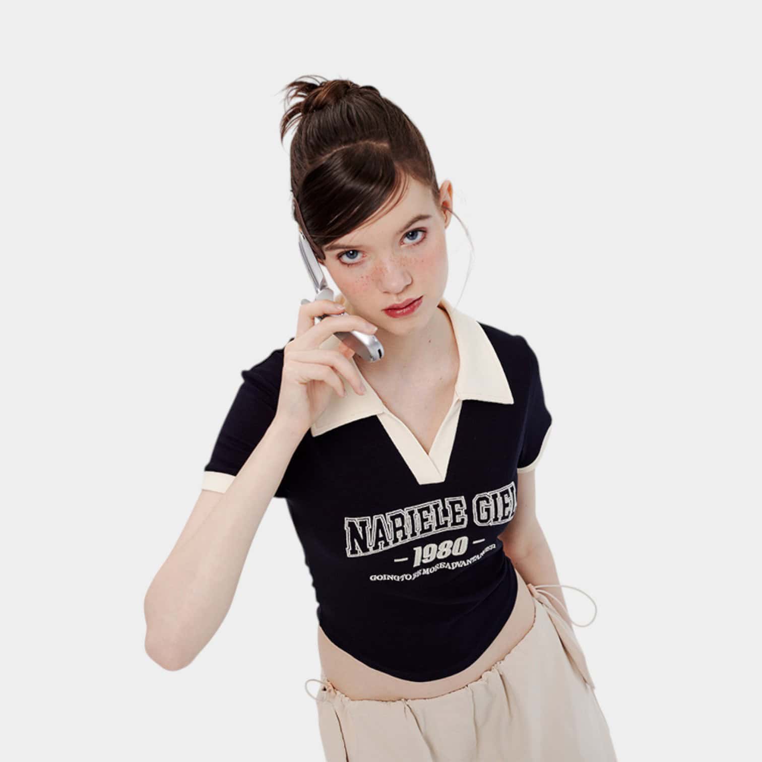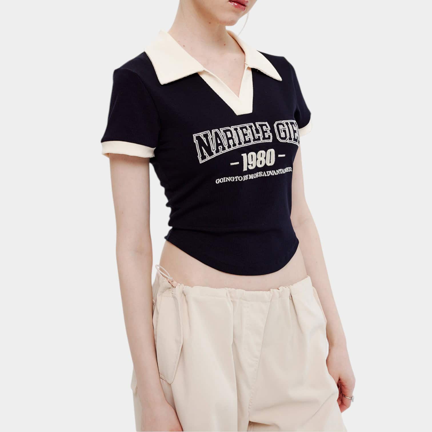 Damen Polo Shirt mit Textdruck und kurzen Ärmeln