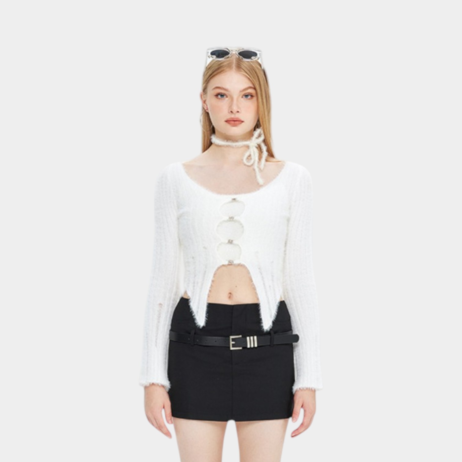 Dieses bauchfreie Oberteil mit V-Ausschnitt hat lange Ärmel und eine schmale Passform für eine stilvolle und schmeichelhafte Silhouette. Es verfügt über eine schmale Passform und einen V-Ausschnitt für den praktischen täglichen Gebrauch.