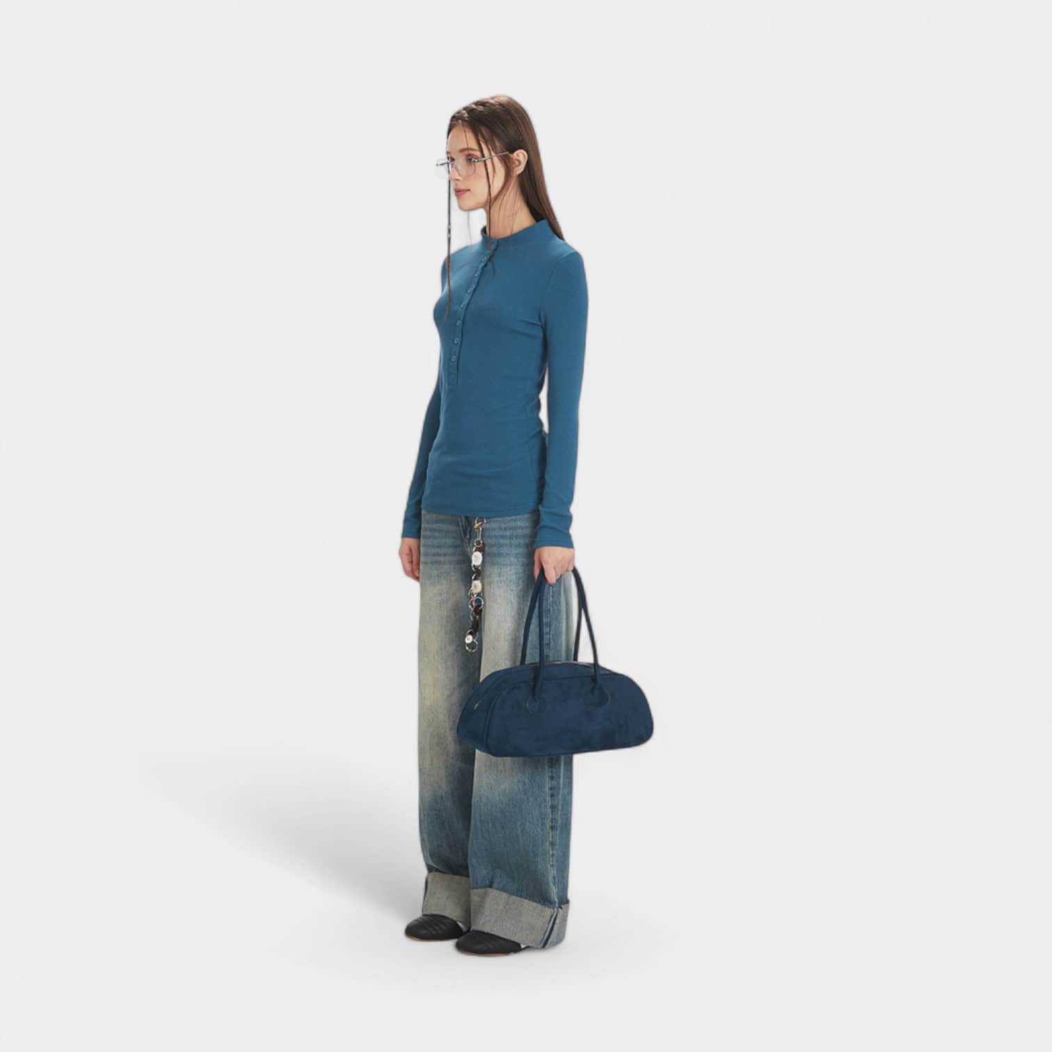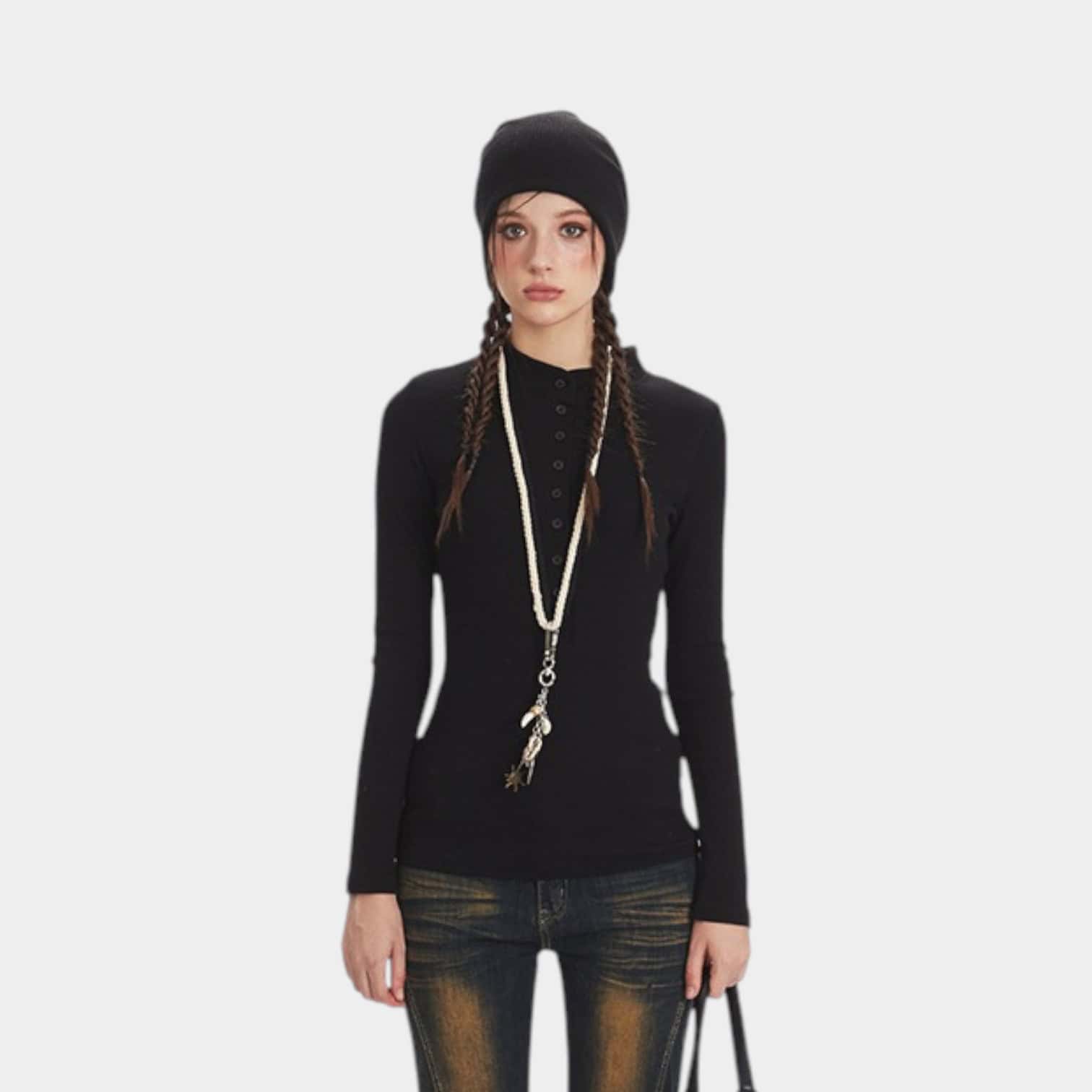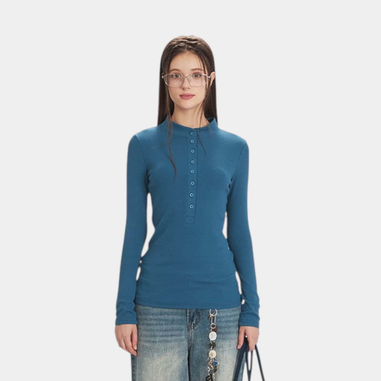 Dieses langärmelige Damen-Henley-Shirt bietet eine schmeichelhafte, schmale Passform und einen bequemen, mittellangen Stil. Es zeichnet sich durch eine schmale Passform und einen Henley-Ausschnitt für den praktischen täglichen Gebrauch aus.