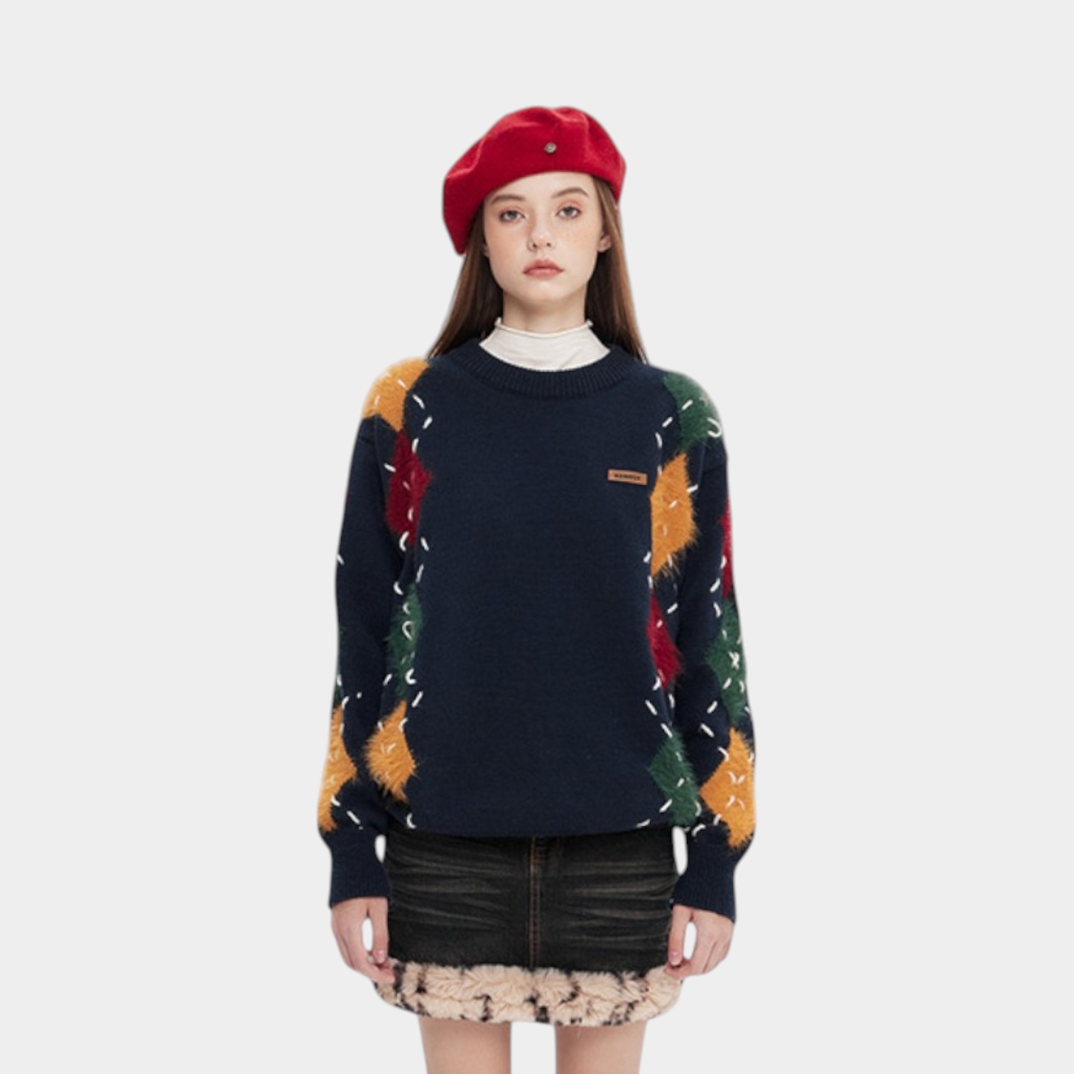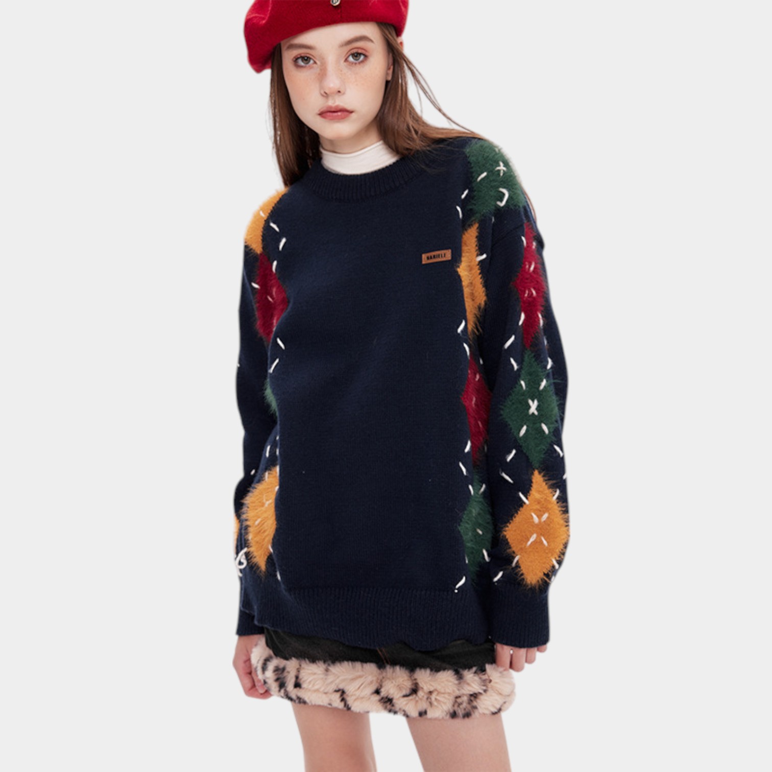 Dieser karierte Strickpullover für Damen bietet eine entspannte, übergroße Passform mit langen Ärmeln und einem klassischen Rundhalsausschnitt, perfekt für gemütlichen Komfort und mühelosen Stil. Er verfügt über eine übergroße Passform und Bündchen für den praktischen täglichen Gebrauch.