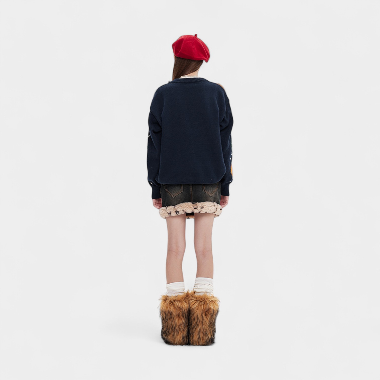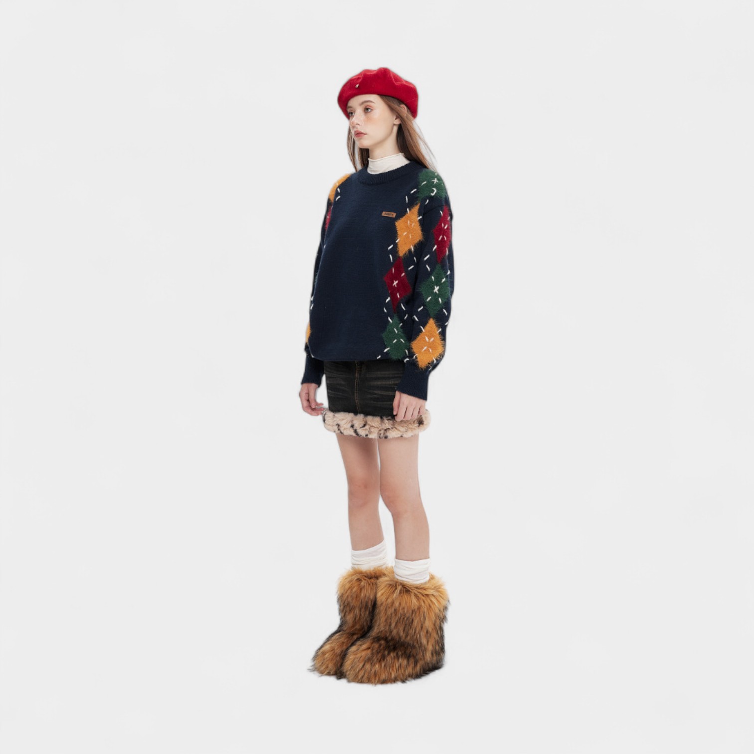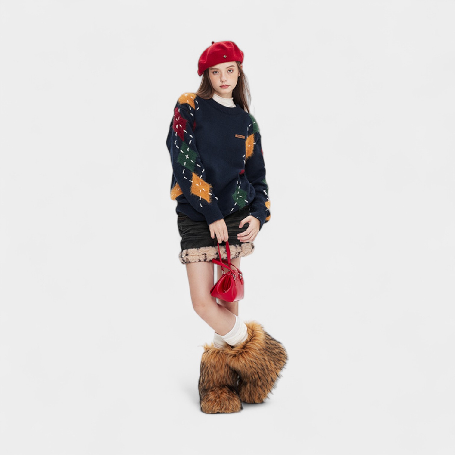 Dieser übergroße, karierte Strickpullover für Damen mit Bündchen ist perfekt für bequeme Alltagskleidung oder stilvolle, lässige Ausflüge.