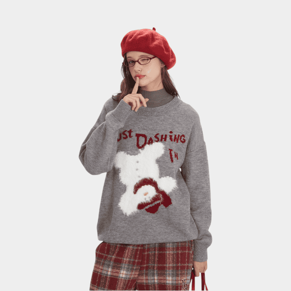 Dieser übergroße Damen Strickpullover mit Textdruck ist perfekt für bequeme Alltagskleidung oder stilvolle, lässige Ausflüge.