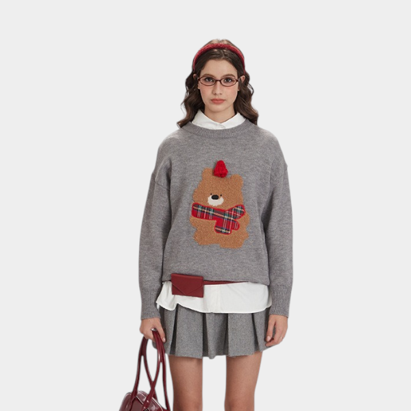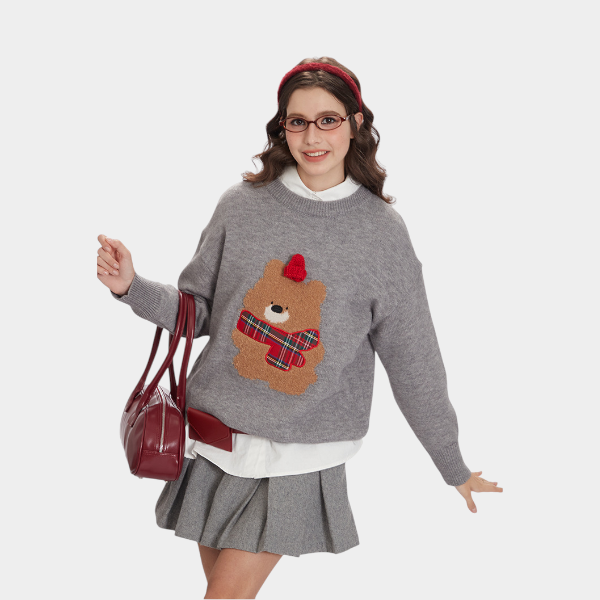 Damen Strickpullover mit Tiermuster und langen Ärmeln