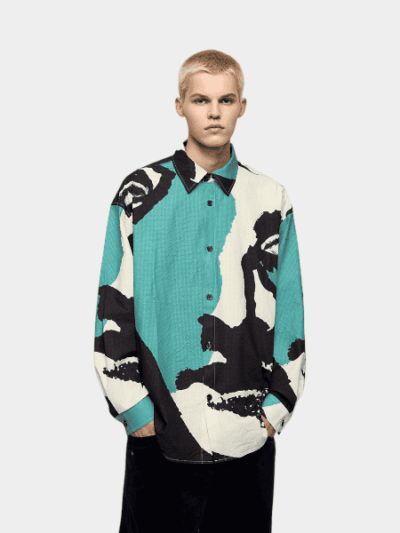Herren Hemd mit künstlerischem Druck, langen Ärmeln und lässigem Schnitt