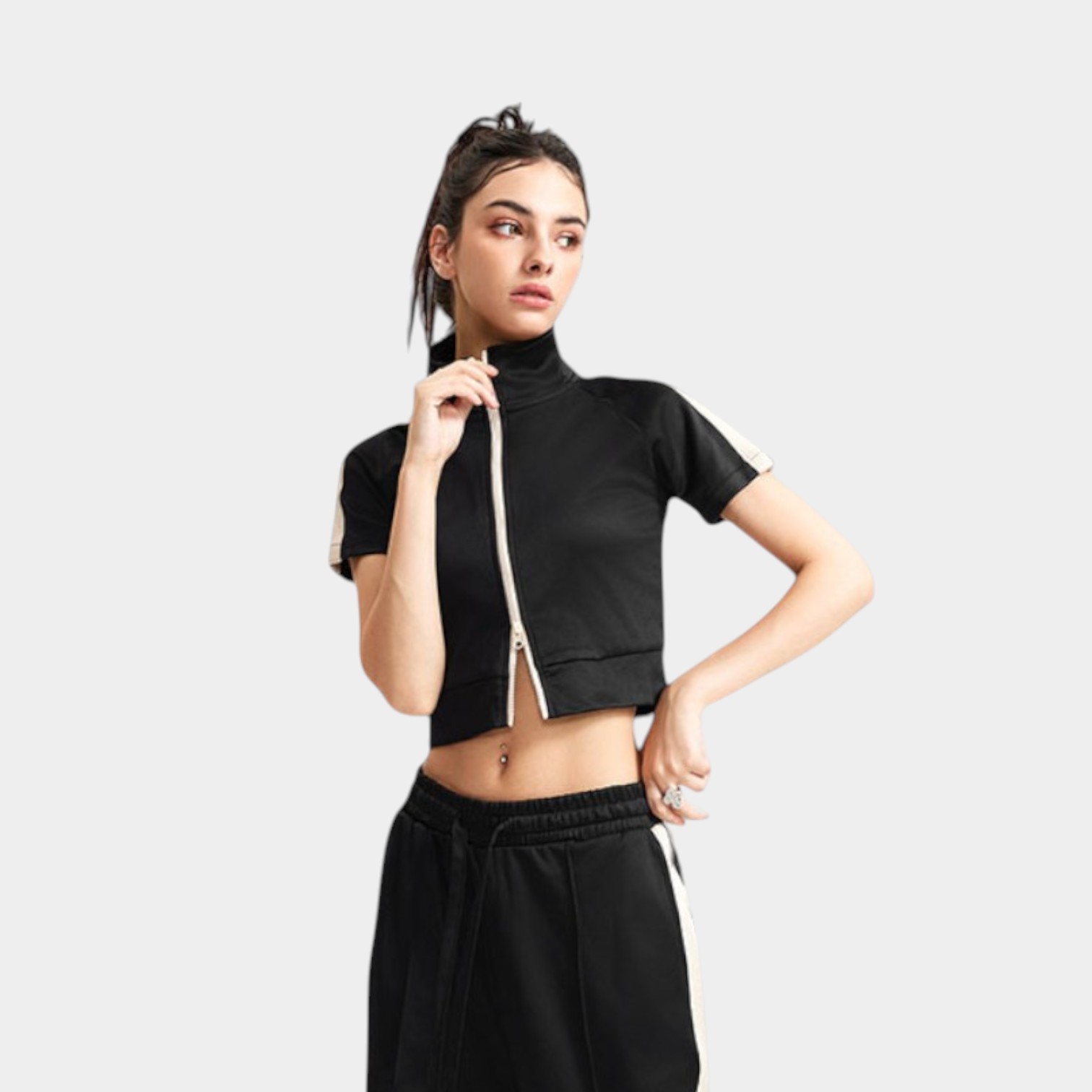 Gestreifte Damenjacke mit kurzen Ärmeln und Reißverschluss