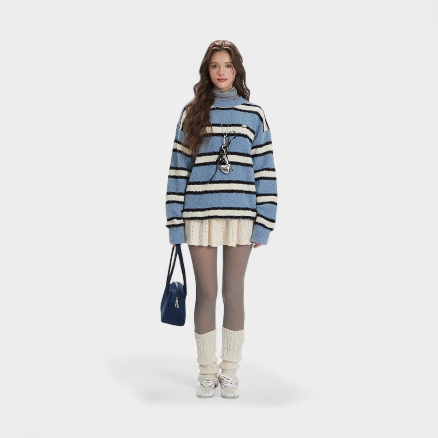 Dieser gestreifte, übergroße Strickpullover ist perfekt für bequeme Alltagskleidung oder stilvolle, zwanglose Ausflüge.