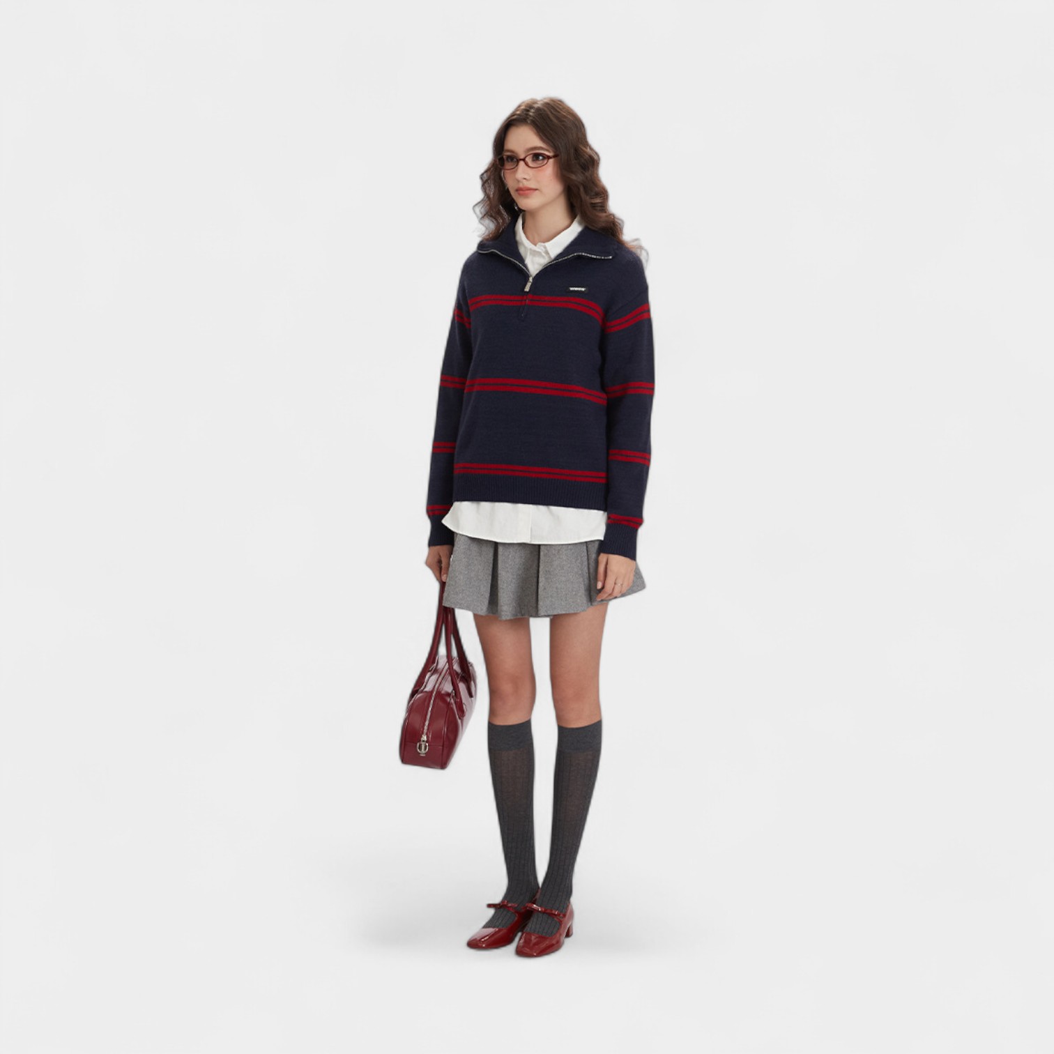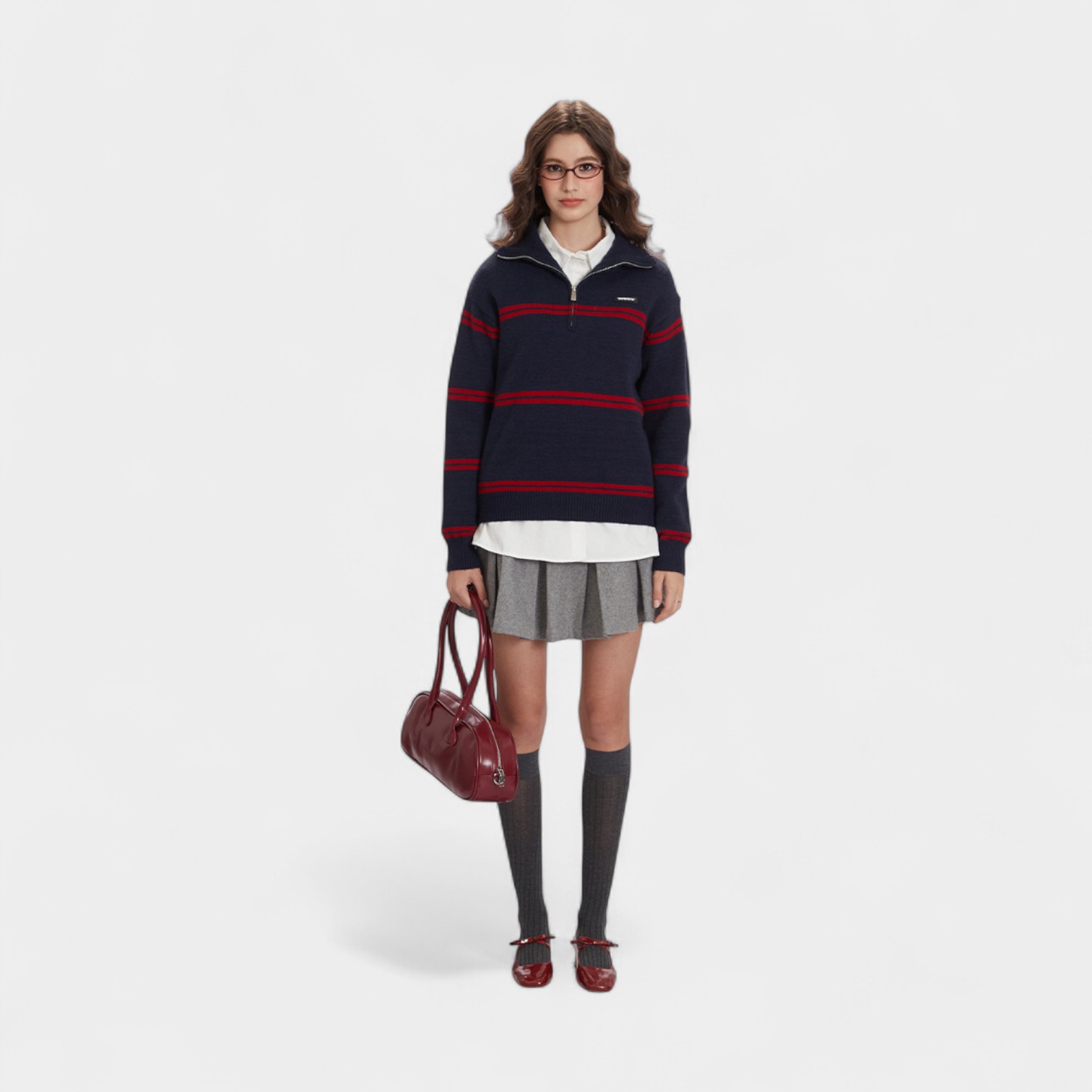 Gestreifter Strickpullover für Damen mit langen Ärmeln