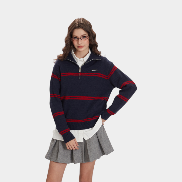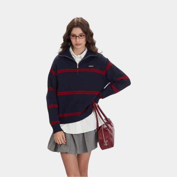 Dieser gestreifte, übergroße Damenstrickpullover ist perfekt für bequeme Alltagskleidung oder stilvolle, zwanglose Ausflüge.