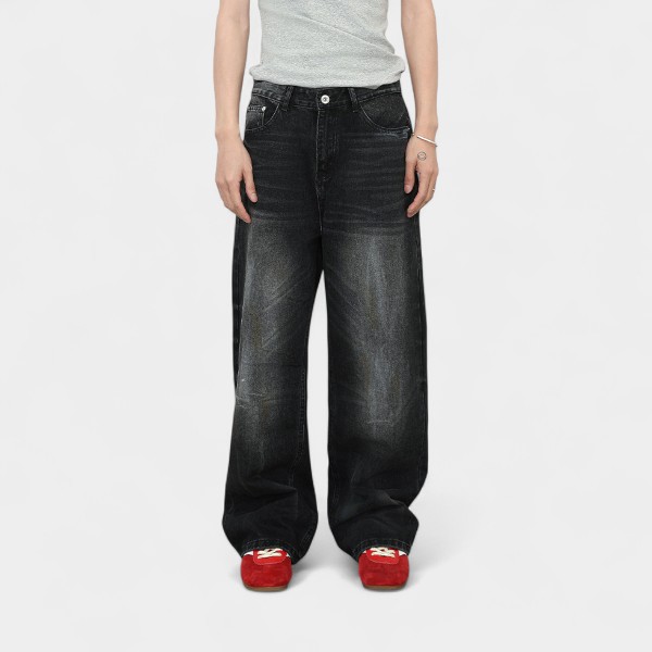 Diese übergroßen Herrenjeans verfügen über einen klassischen Knopfverschluss und praktische Taschen für den täglichen Gebrauch. Sie zeichnen sich durch „Oversized“ und Knöpfe für den praktischen täglichen Gebrauch aus.