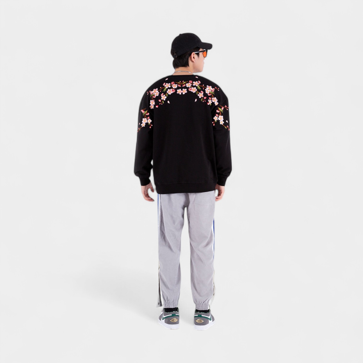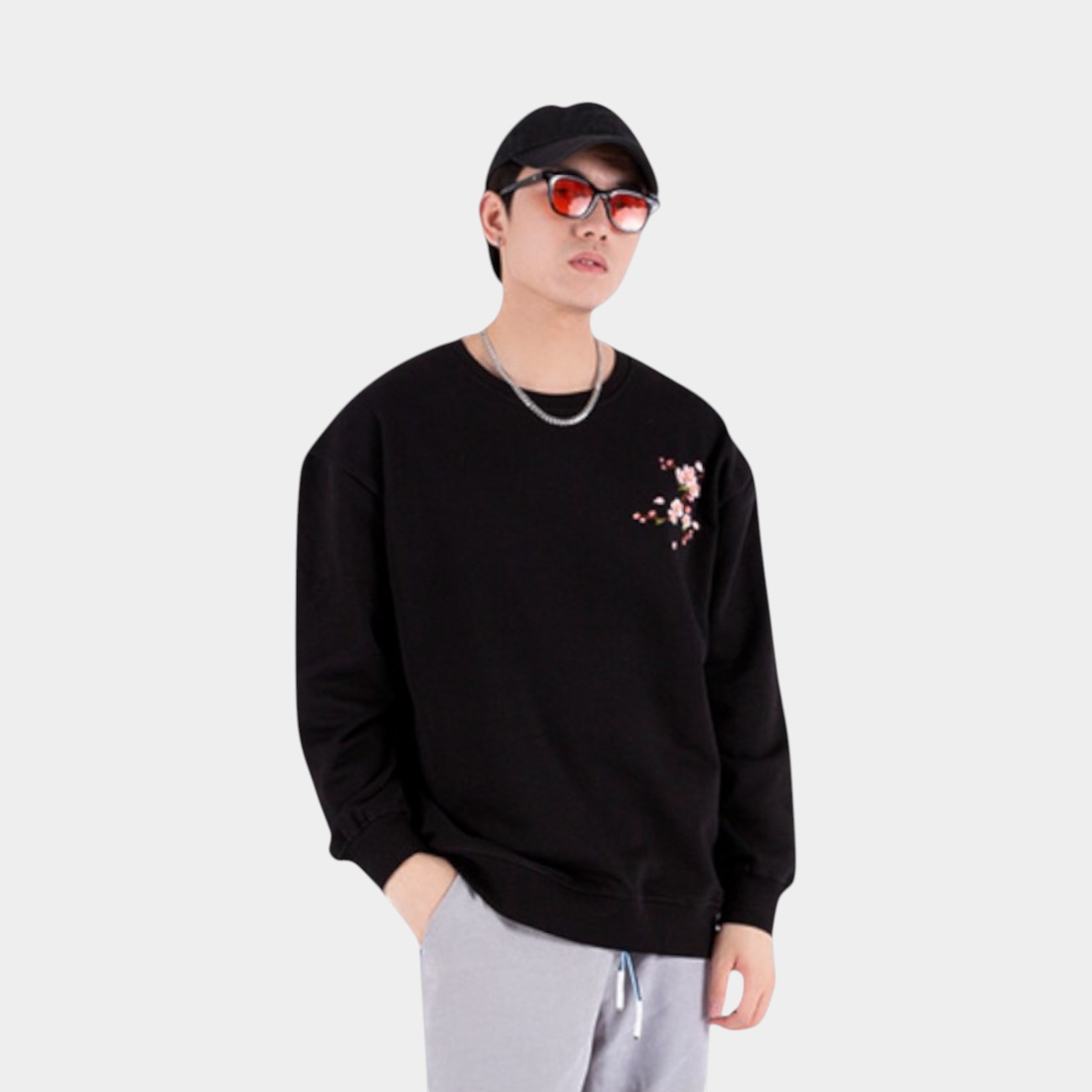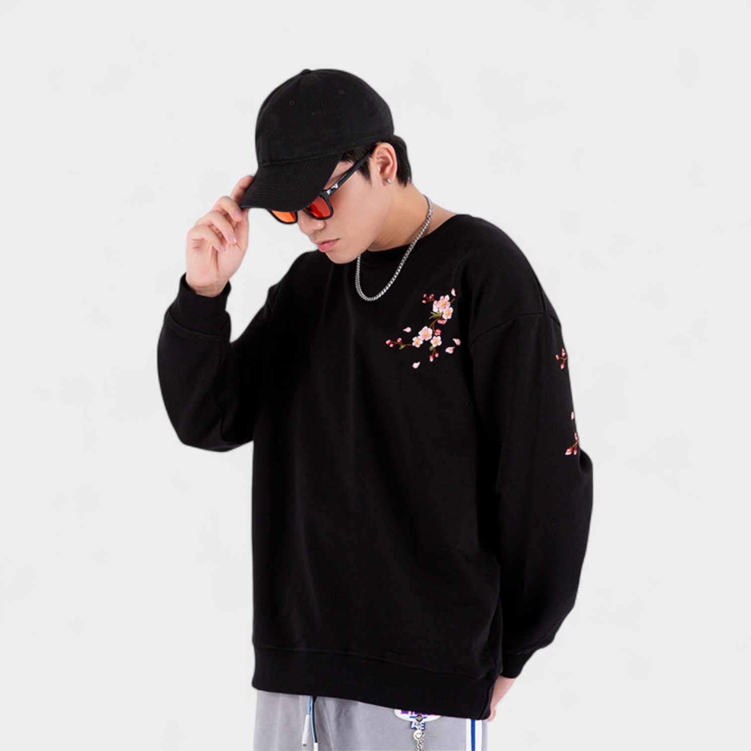 Dieses Herren-Sweatshirt mit Blumenmuster und Bündchen bietet einen bequemen Oversize-Stil für Freizeitkleidung und entspannte Umgebungen.