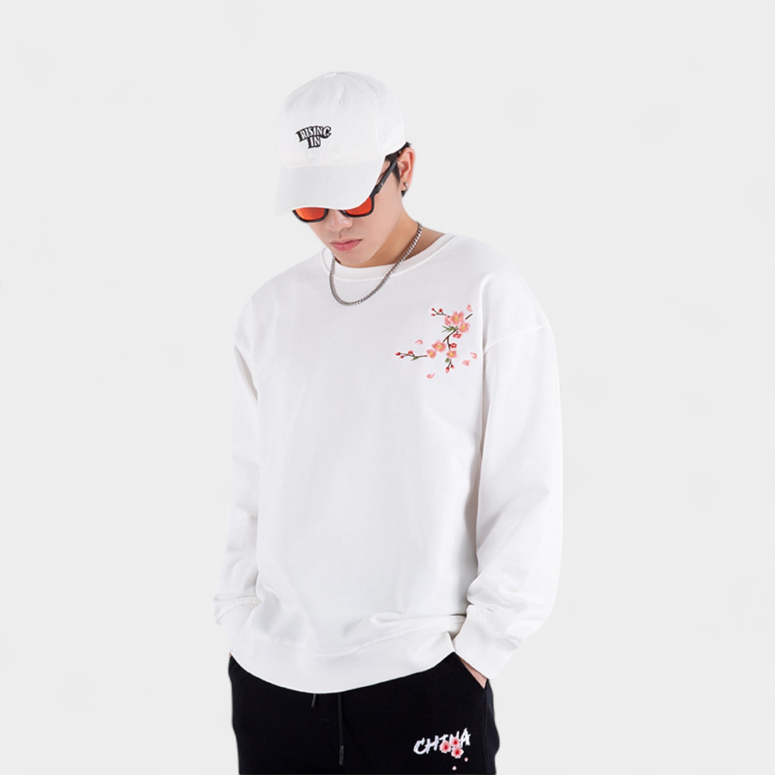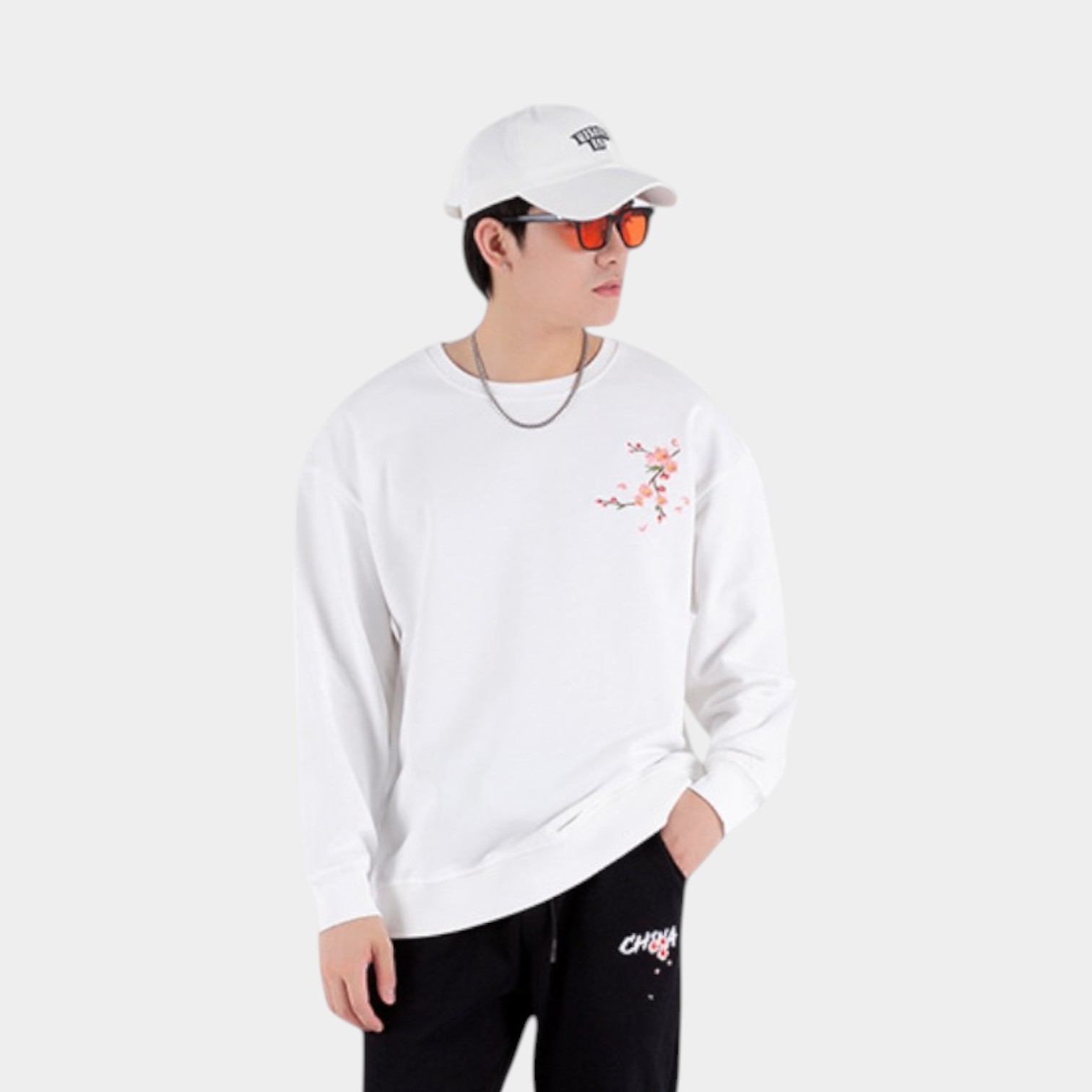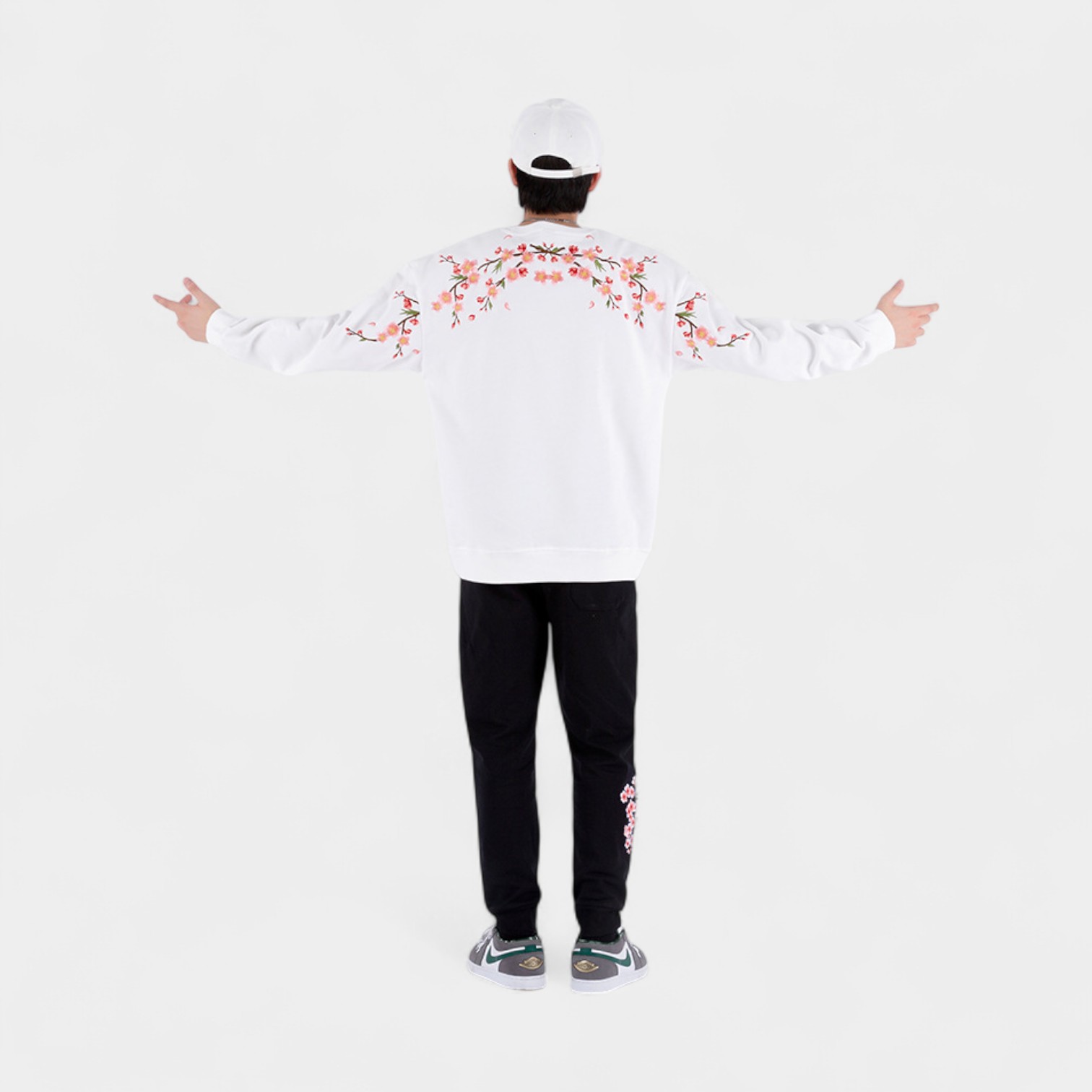 Dieses Herren-Sweatshirt mit Blumenmuster und Bündchen bietet einen bequemen Oversize-Stil für Freizeitkleidung und entspannte Umgebungen.