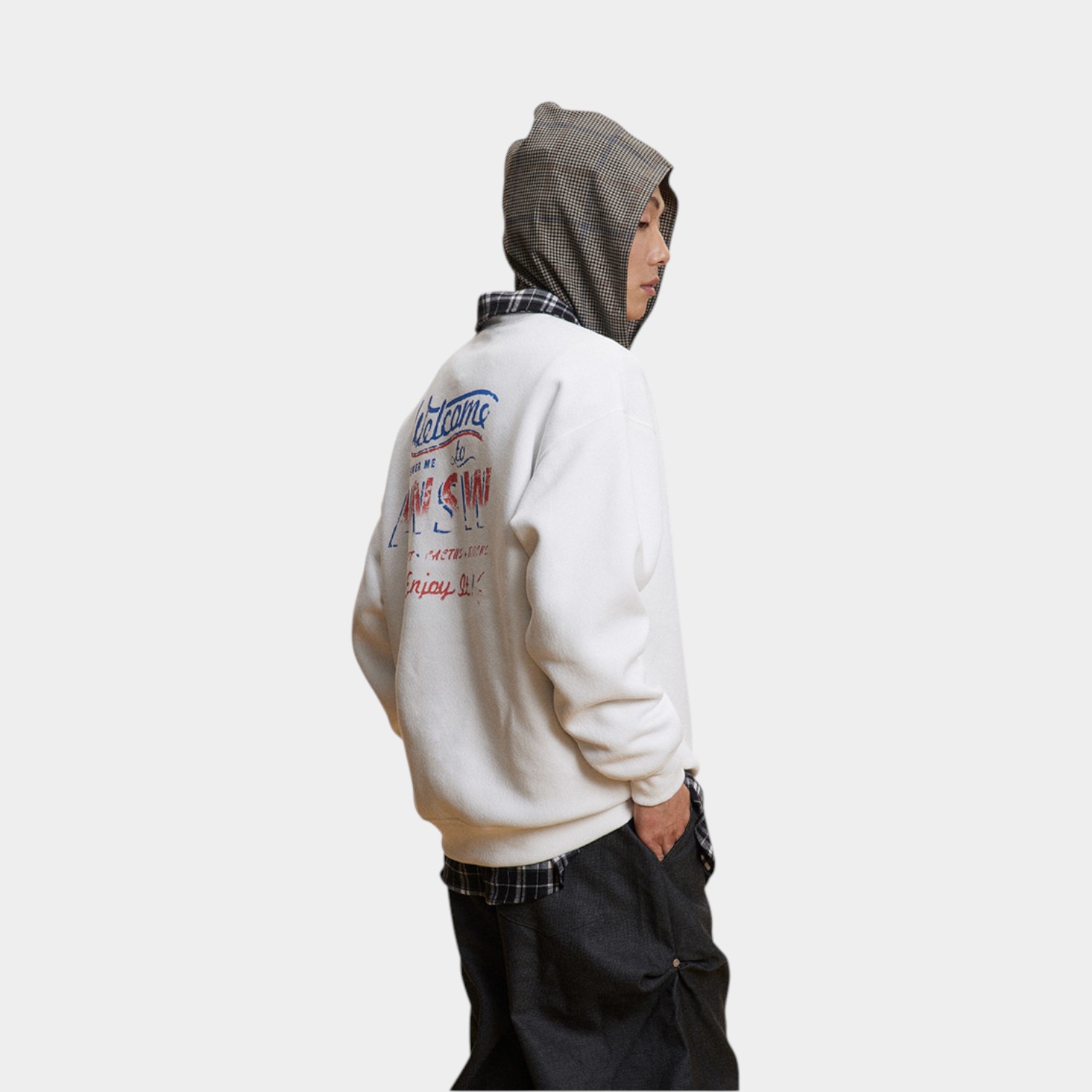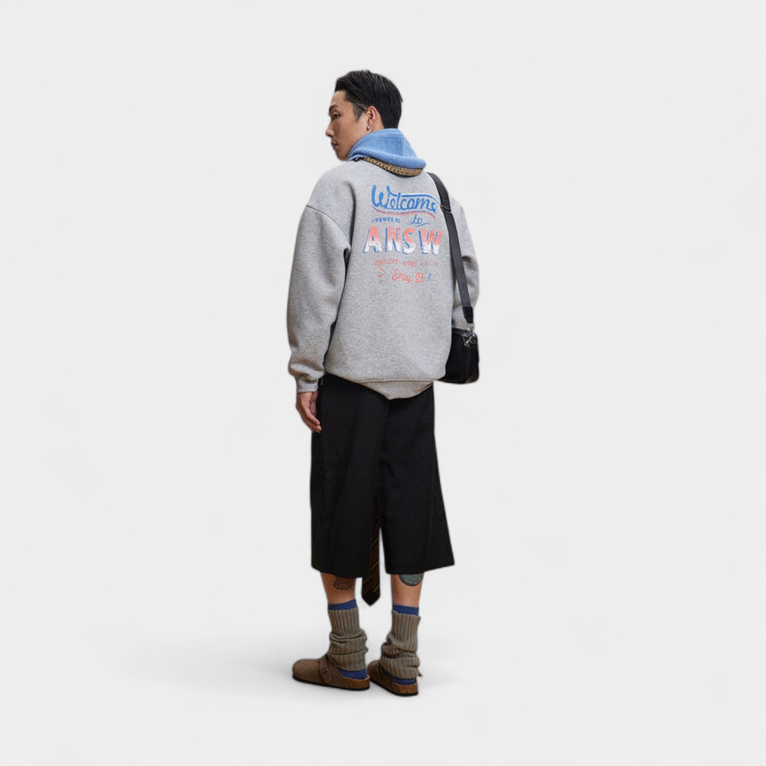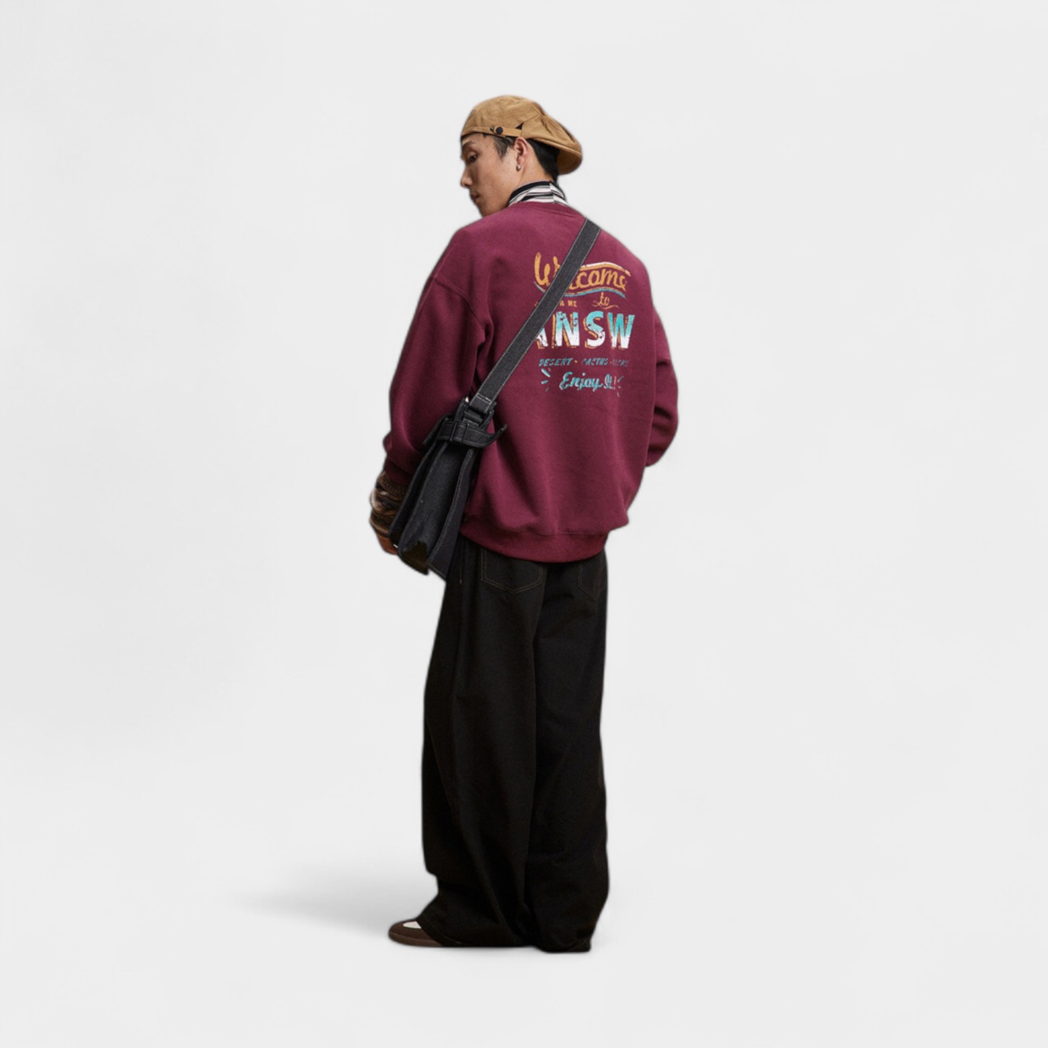 Übergroßer Komfort trifft auf Stil. Perfekt für entspannte Umgebungen oder Wochenendausflüge, mit einem Textdruck und sicheren Bündchen.