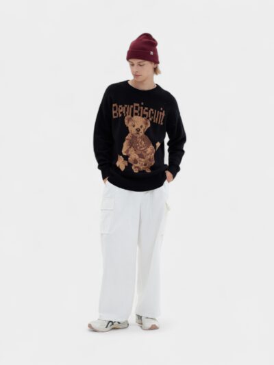 49,95 € inc. VatThis oversized knitted jumper with anime/text prints and comfy cuffs is perfect for everyday wear or casual outings.