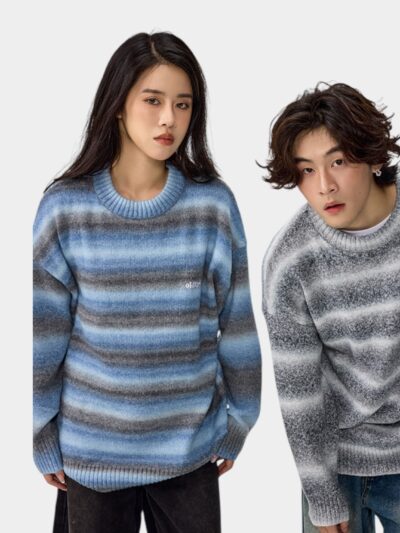 69,95 € inc. VatThis oversized knitted jumper with gradient stripes and text is perfect for comfortable, stylish everyday wear and casual outings. -
