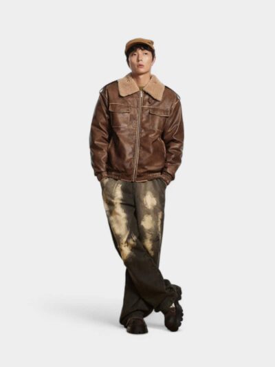 89,95 € inc. VatDiese übergroße Herrenlederjacke mit Textdruck ist stilvoll und bequem für den Alltag oder zwanglose Ausflüge. -