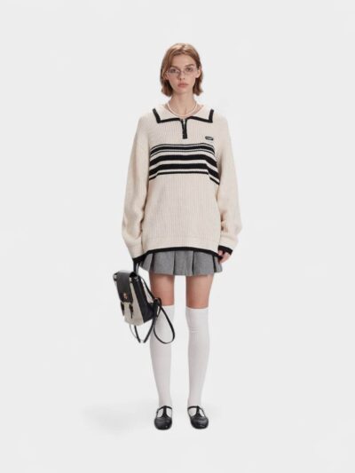 Gestreifter Strickpullover für Damen mit langen Ärmeln
