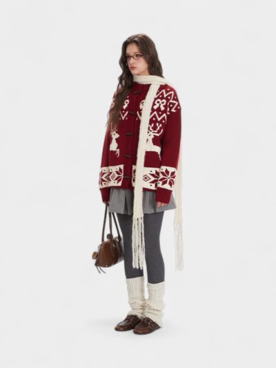 Damen Strickpullover mit Tiermuster und langen Ärmeln