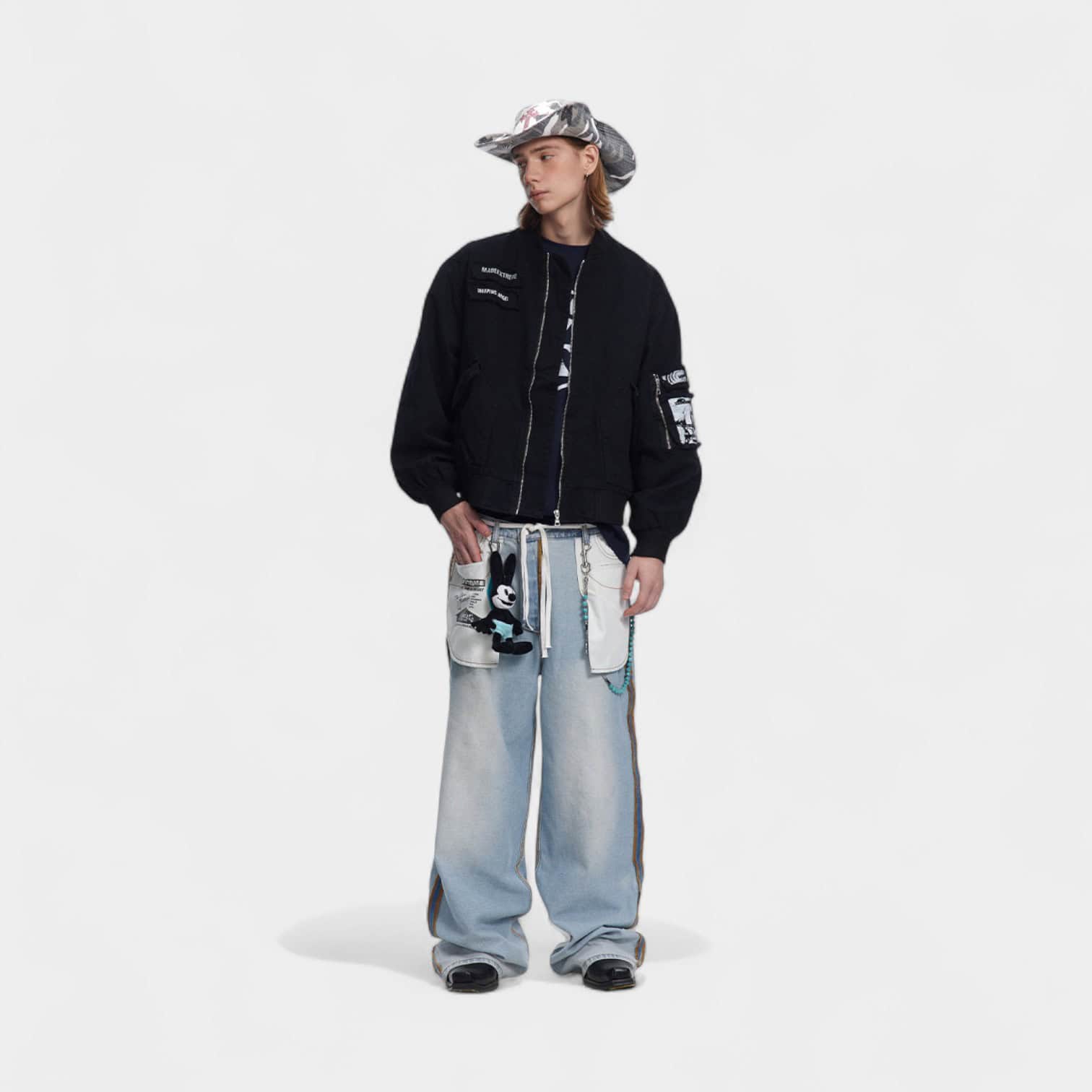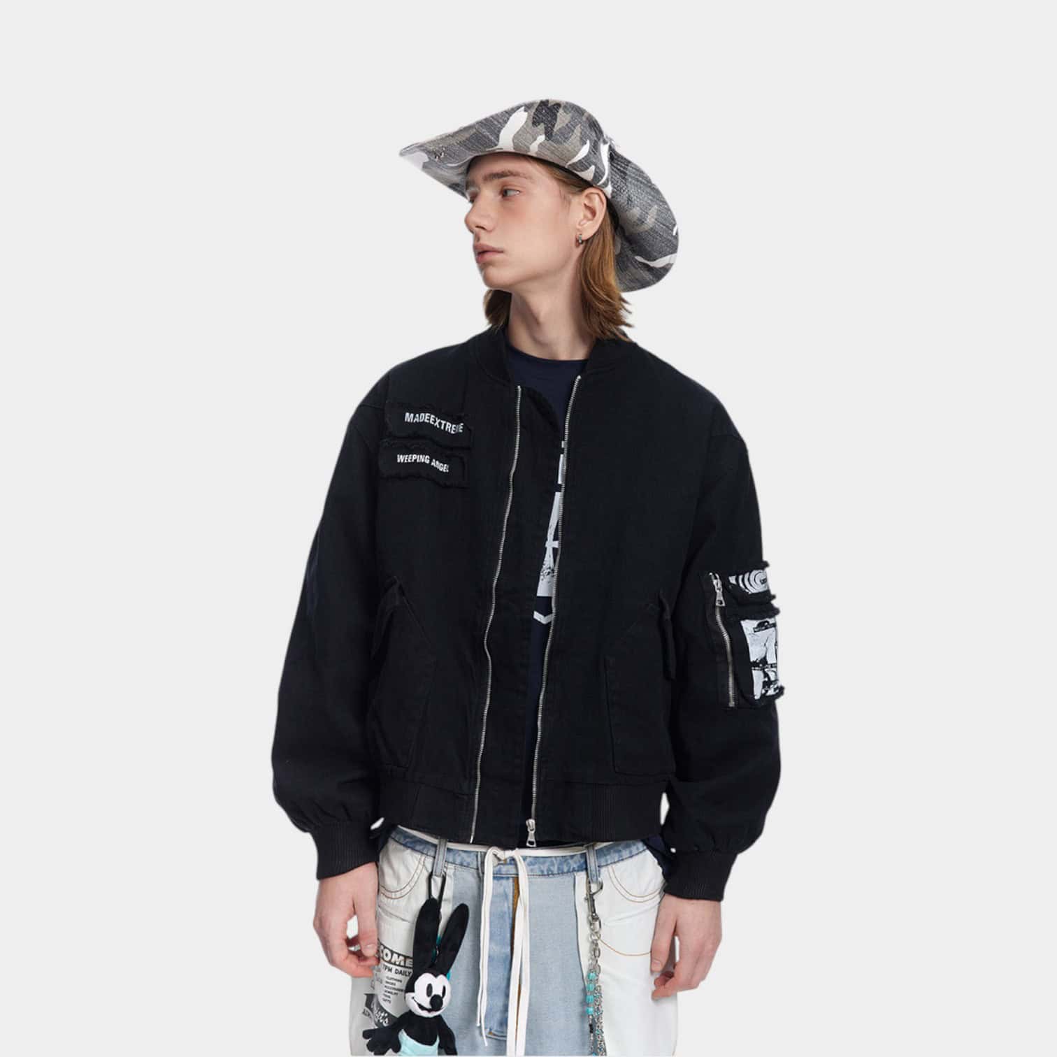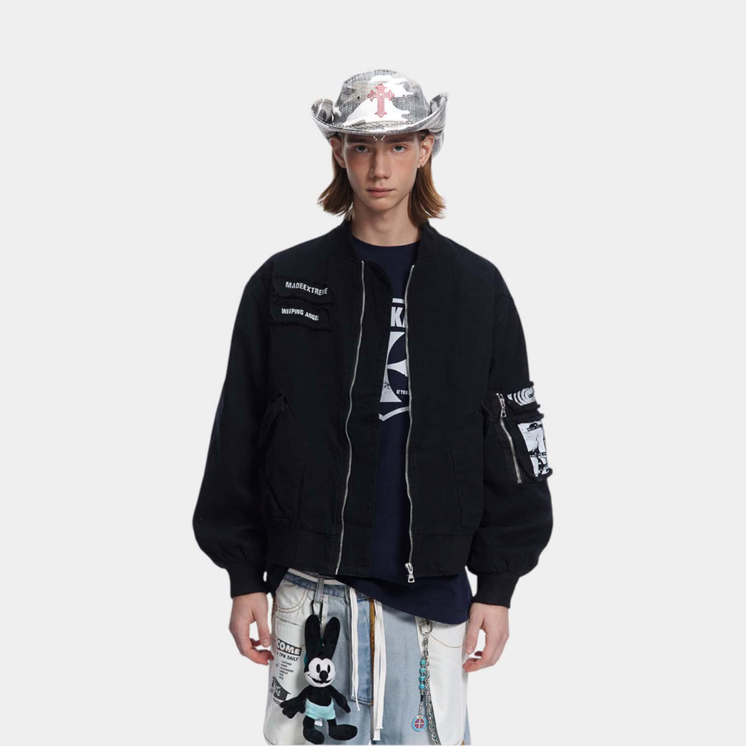 Unisex Bomberjacke mit Textdruck und langen Ärmeln