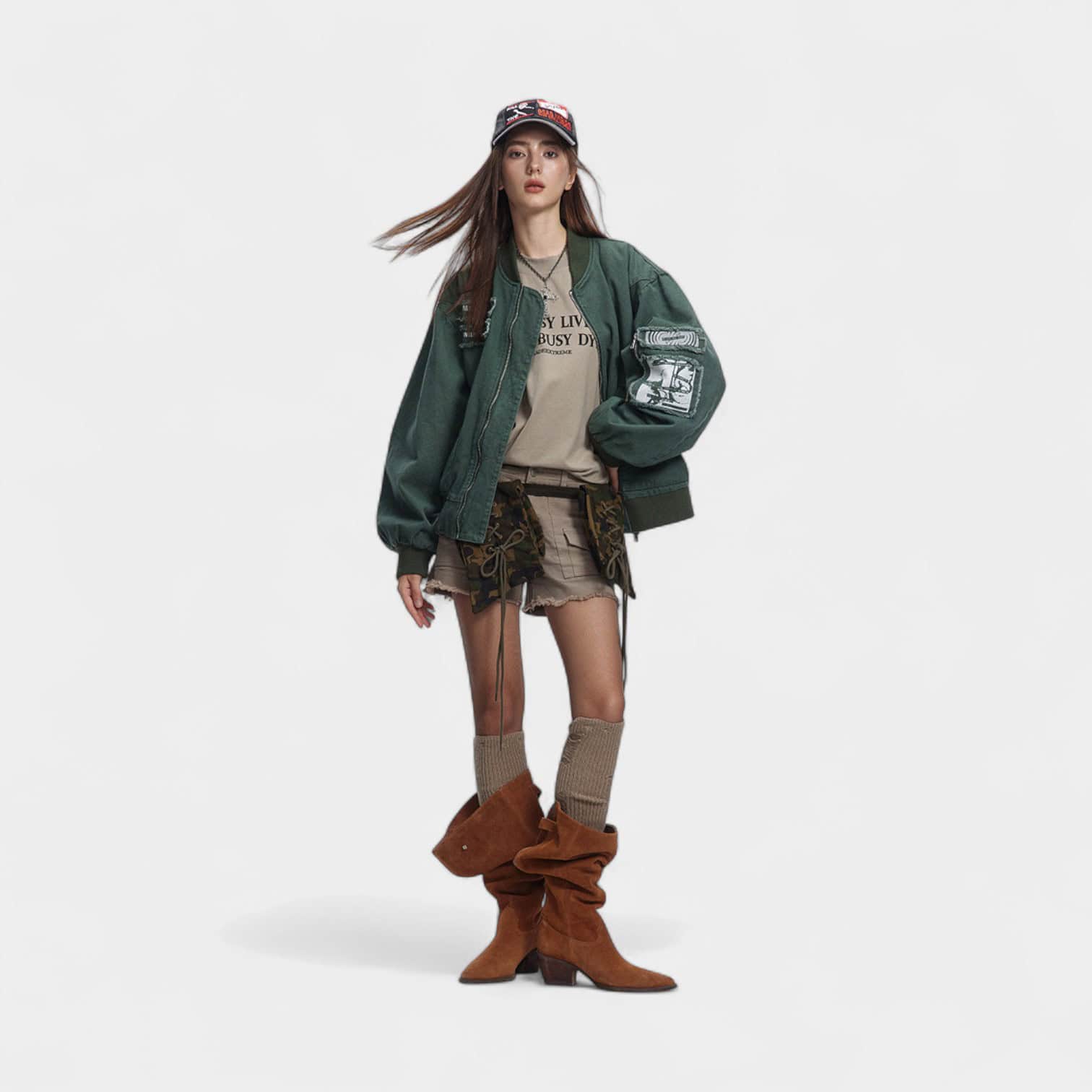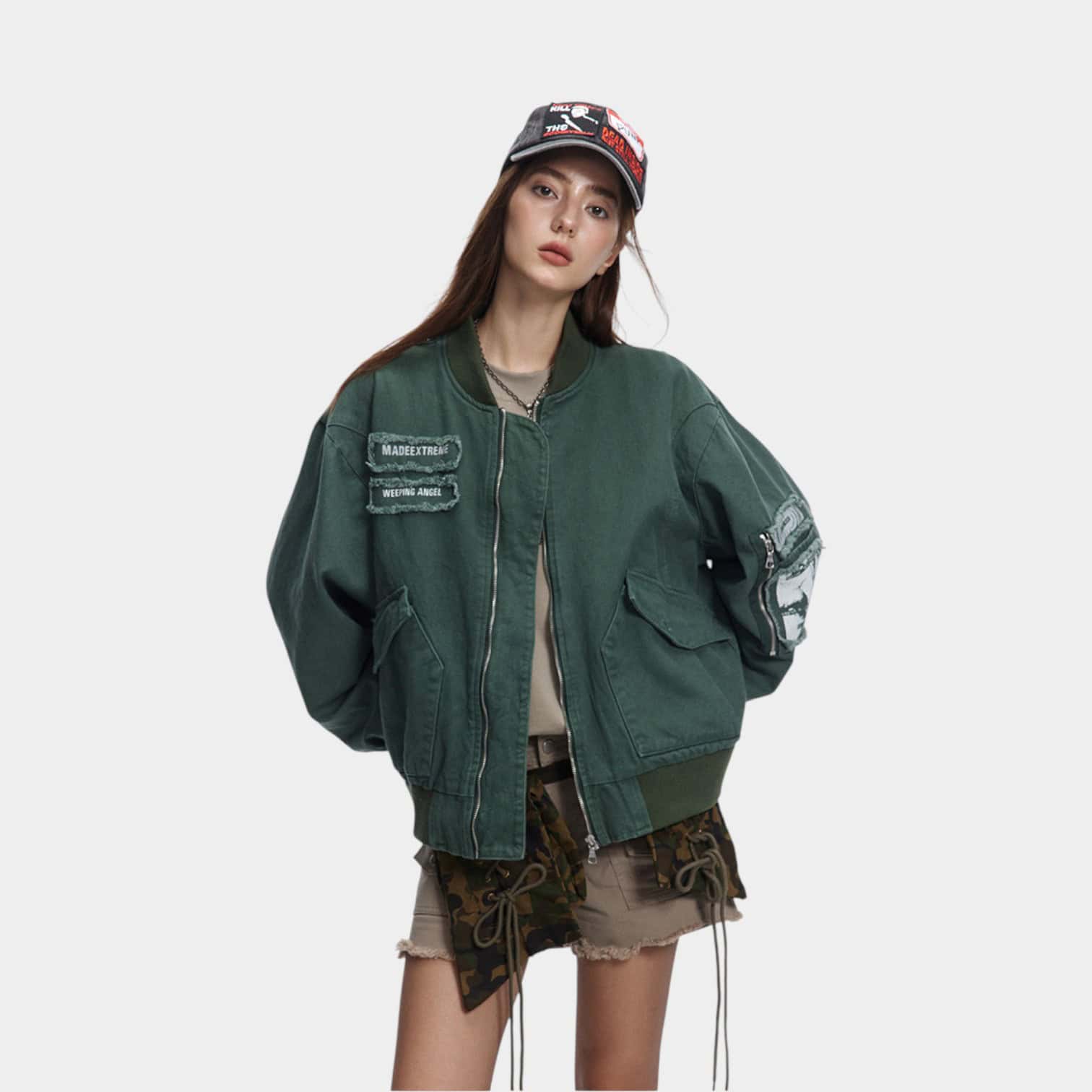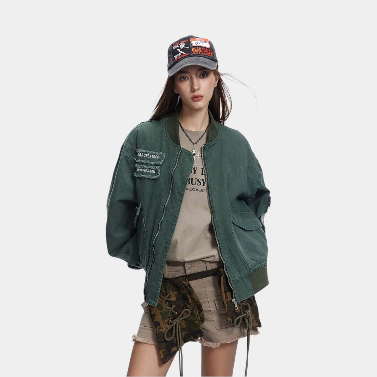 Diese Bomberjacke mit Textdruck, Taschen und Reißverschluss ist perfekt für stilvolle Alltagskleidung oder lässige Ausflüge.