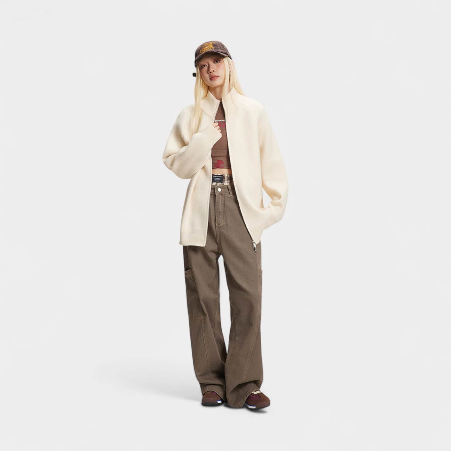 Dieser Zopfstrickpullover mit Taschen ist perfekt für den Alltag und zwanglose Ausflüge.