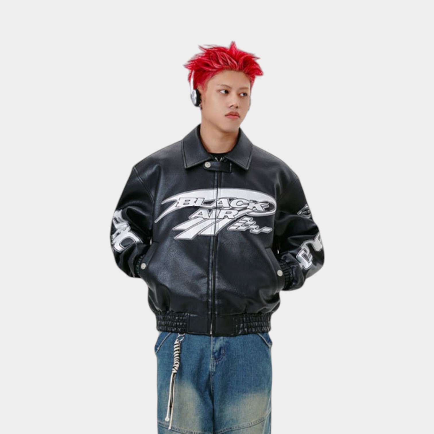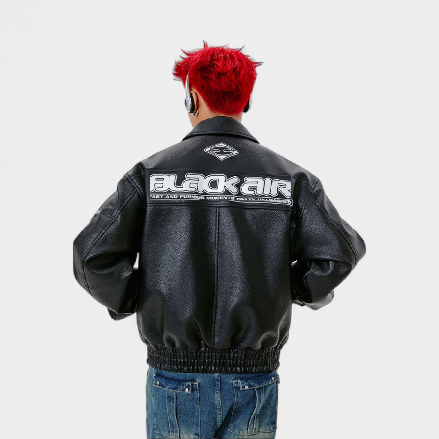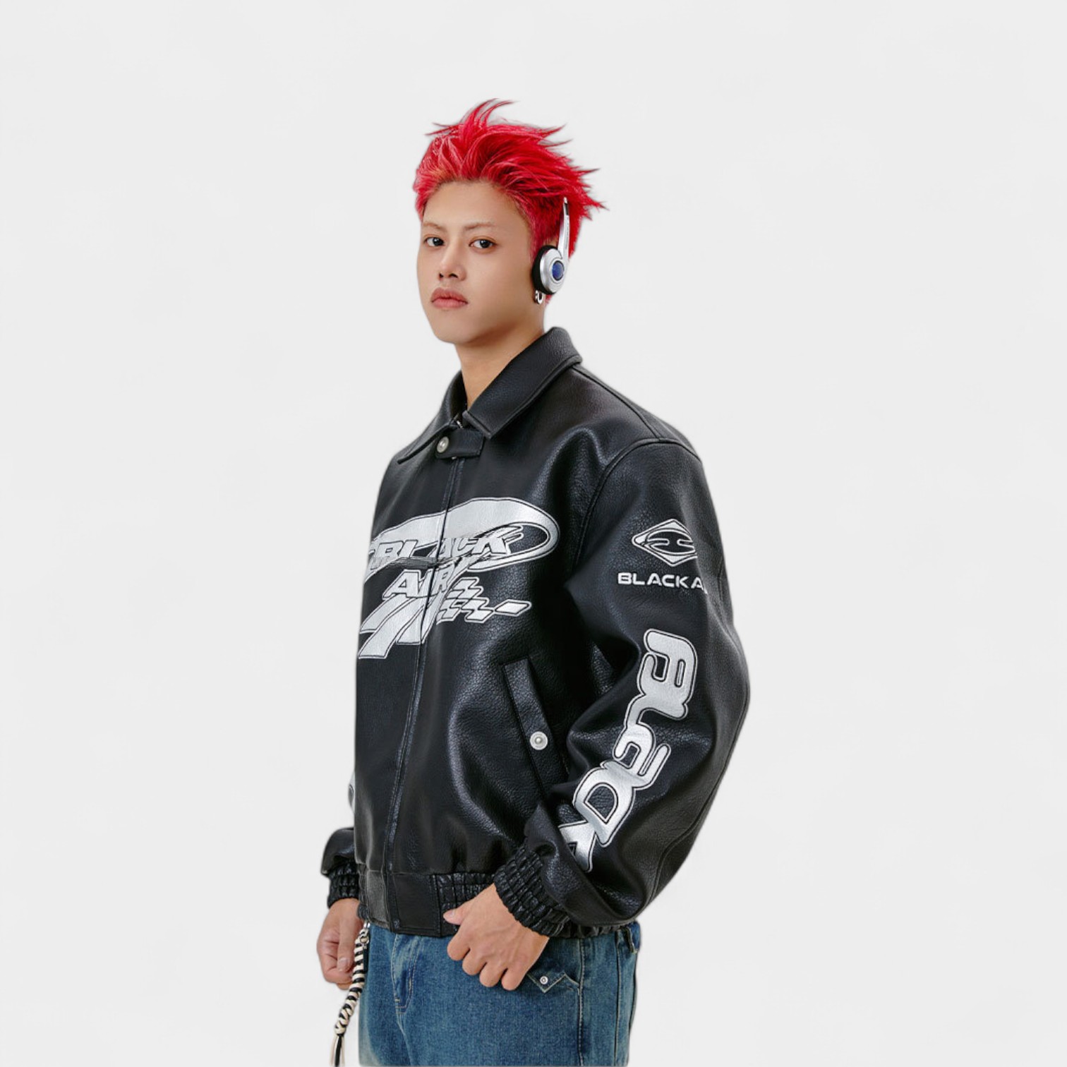 Unisex Lederjacke mit Textdruck und langen Ärmeln