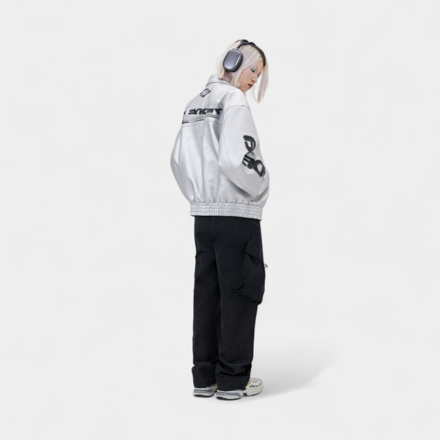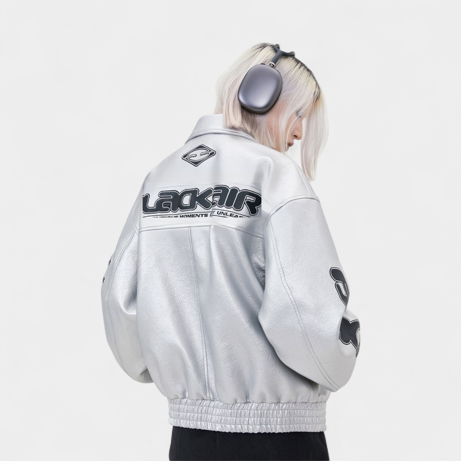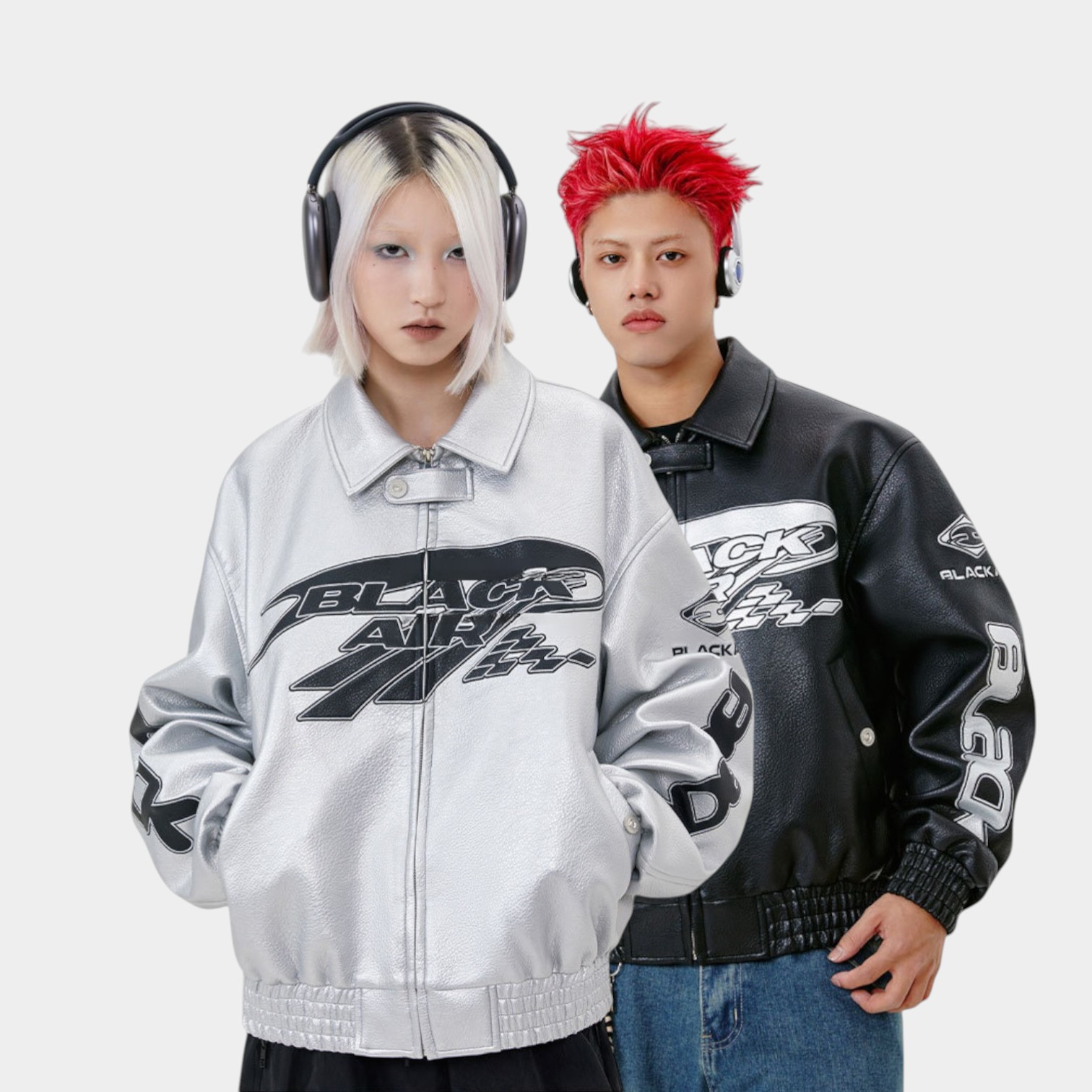 Unisex Lederjacke mit Textdruck und langen Ärmeln