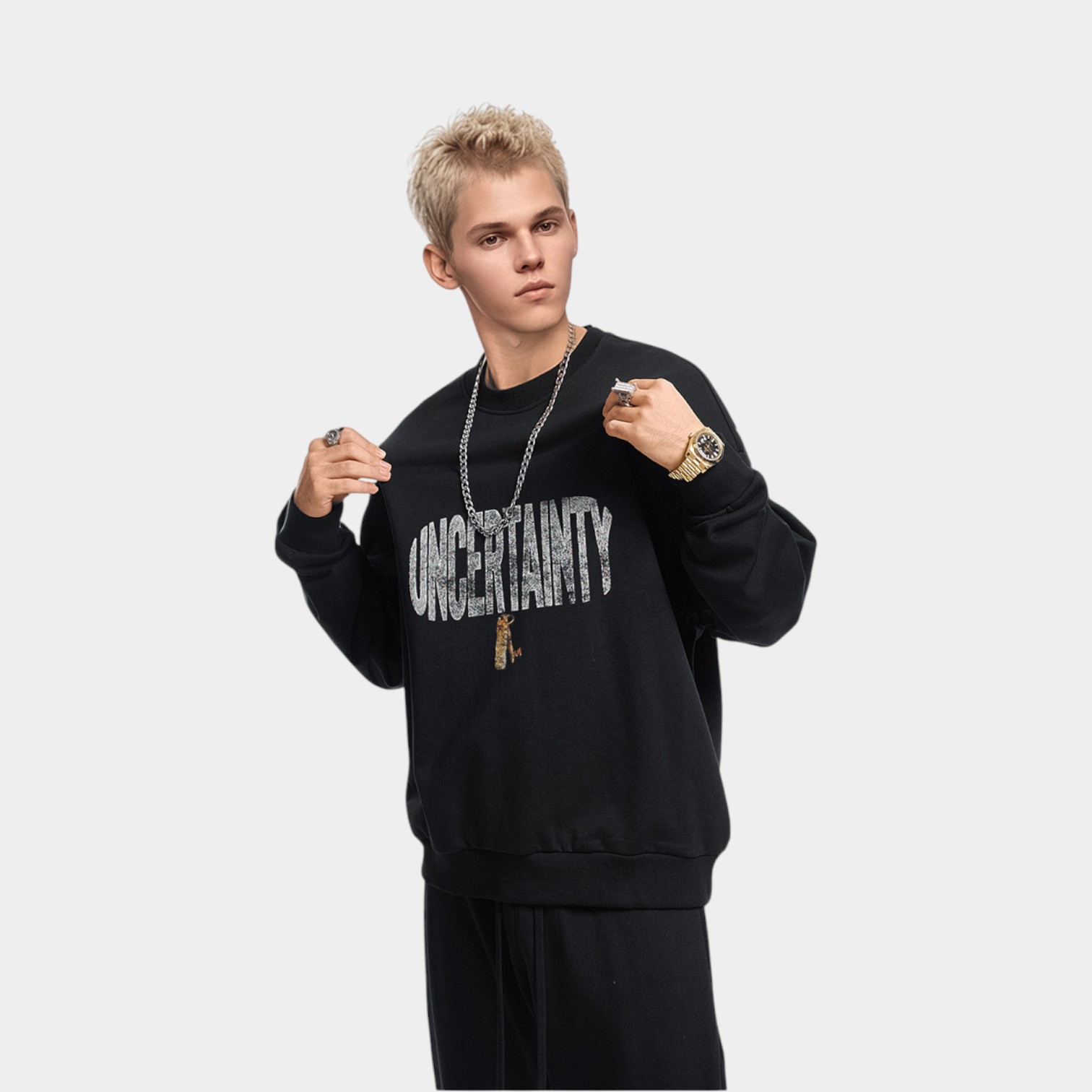 Dieses übergroße Sweatshirt mit Rundhalsausschnitt, langen Ärmeln und Textdruck bietet ultimativen Komfort und eine stylische Unisex-Passform. Es verfügt über einen Oversized-Schnitt und Bündchen für den praktischen täglichen Gebrauch.