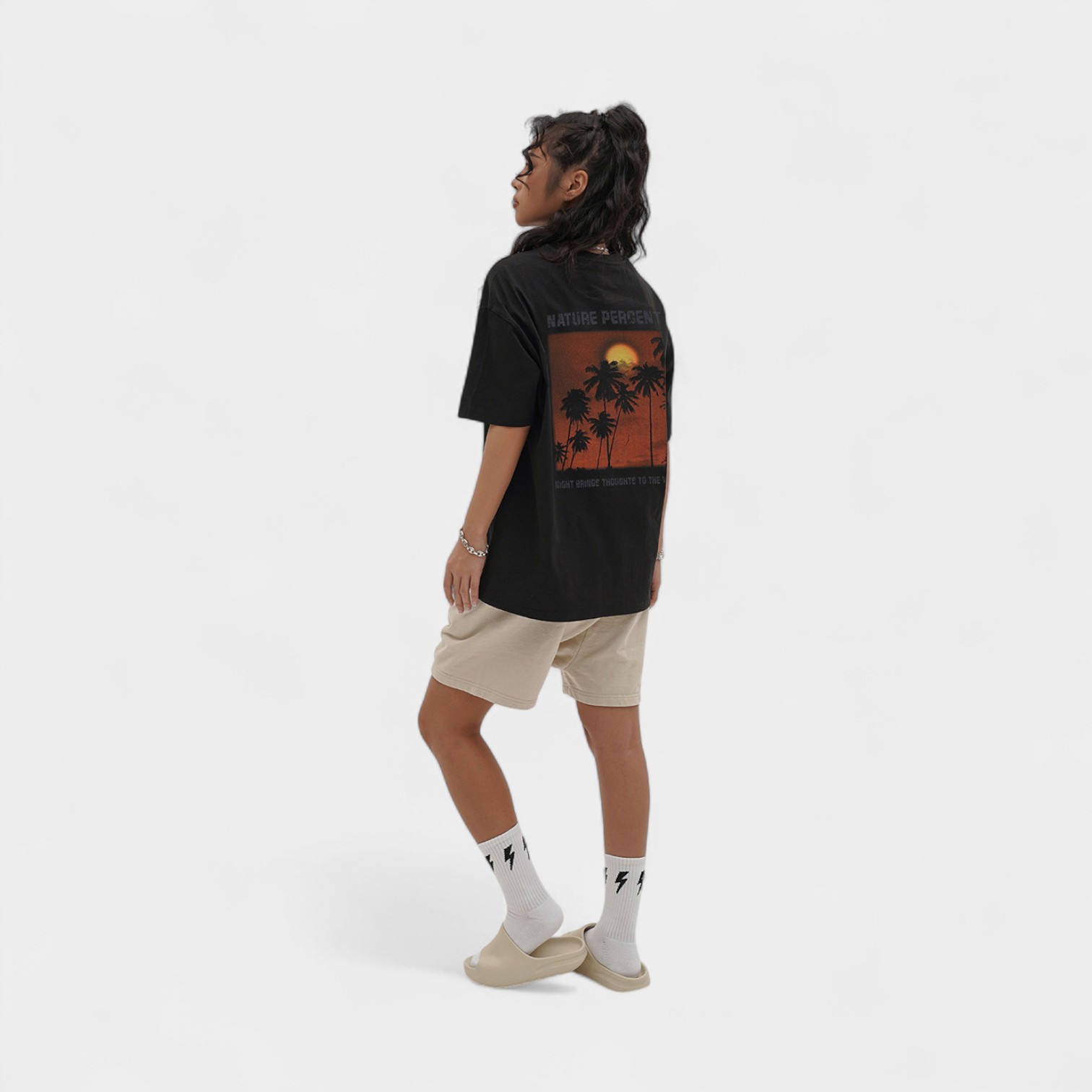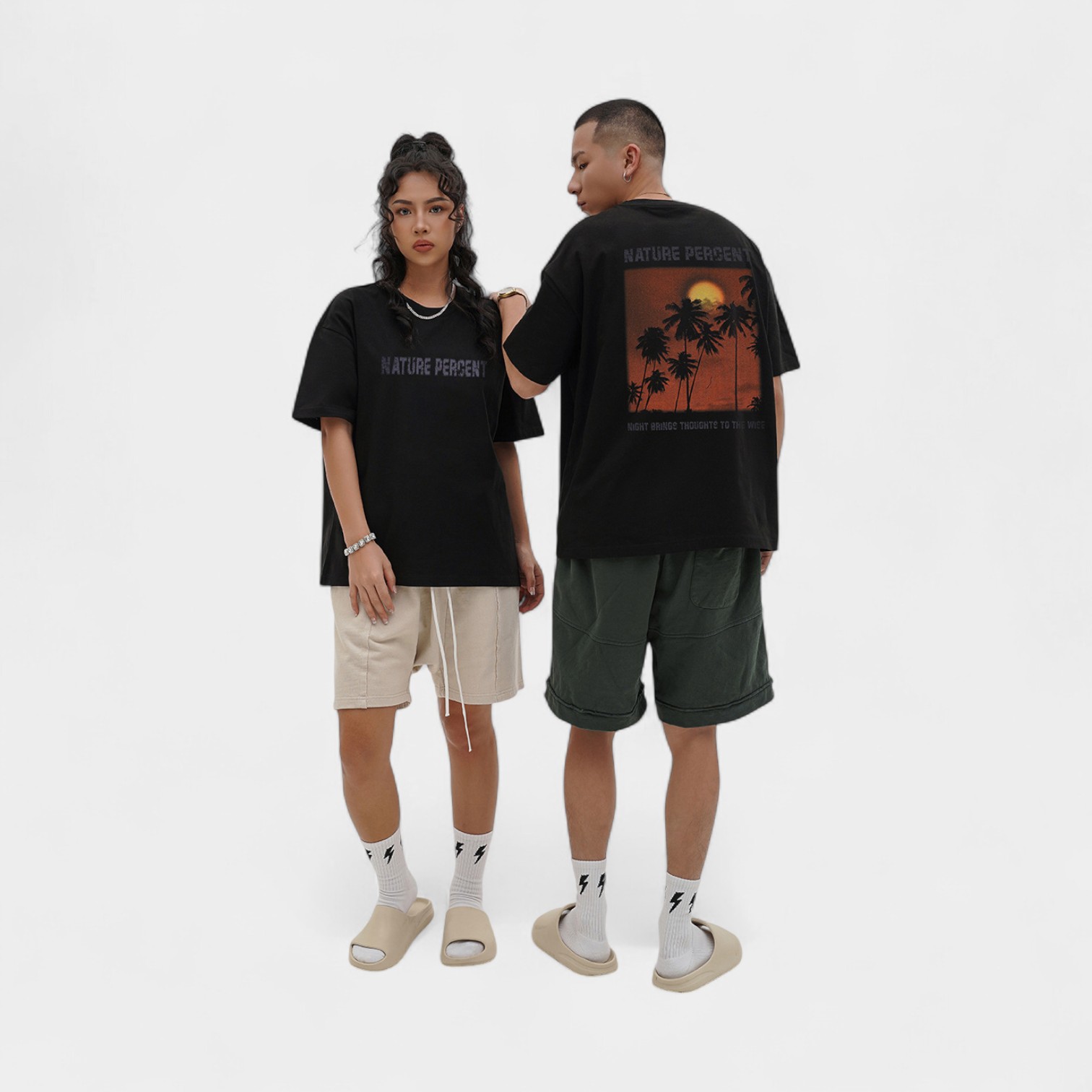 Dieses übergroße Unisex-T-Shirt mit Rundhalsausschnitt verfügt über ein vielseitiges Foto- und Textdruckdesign auf einer bequemen, mittellangen Kurzarm-Silhouette. Es zeichnet sich durch „Oversized“ und „Fotodruck“ für den praktischen täglichen Gebrauch aus.
