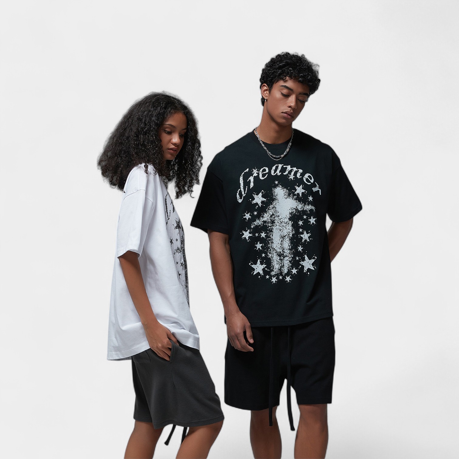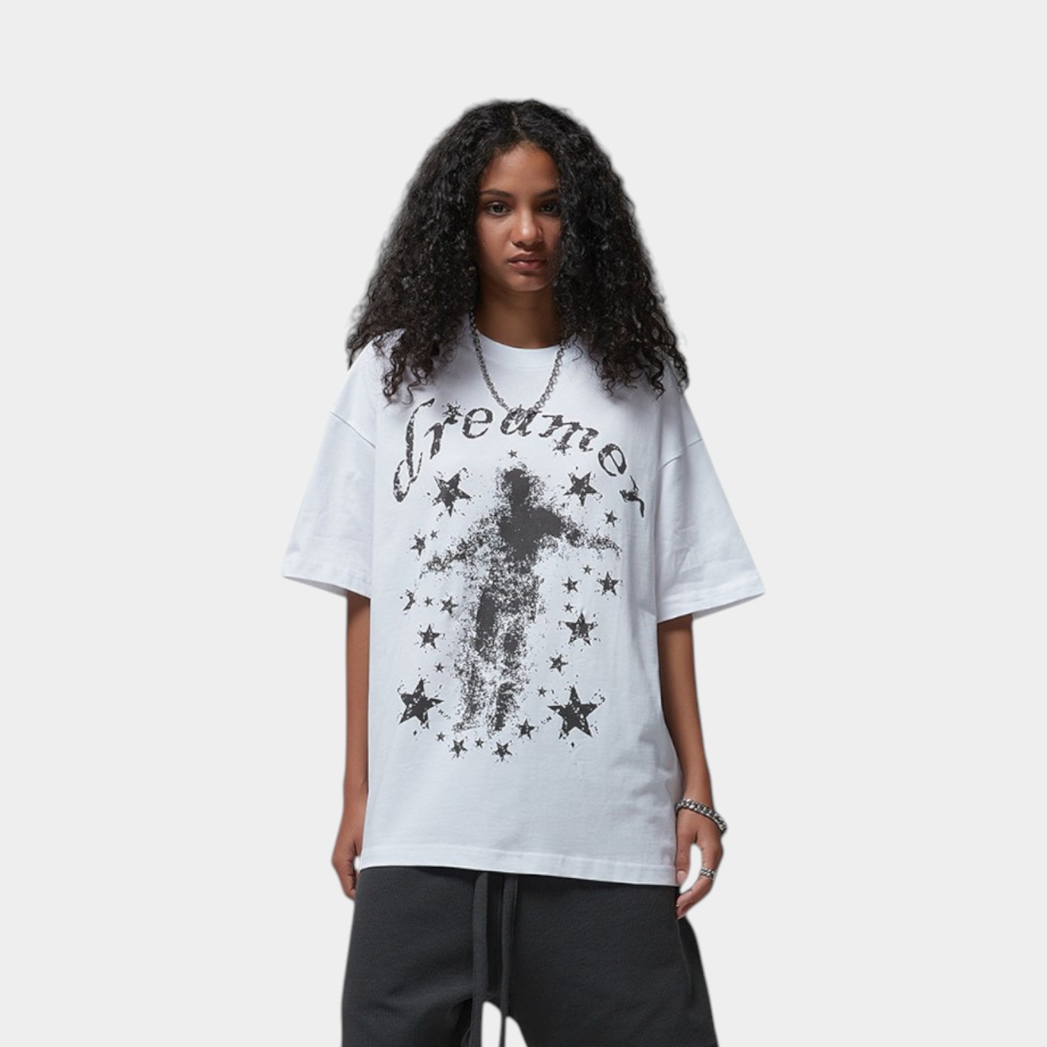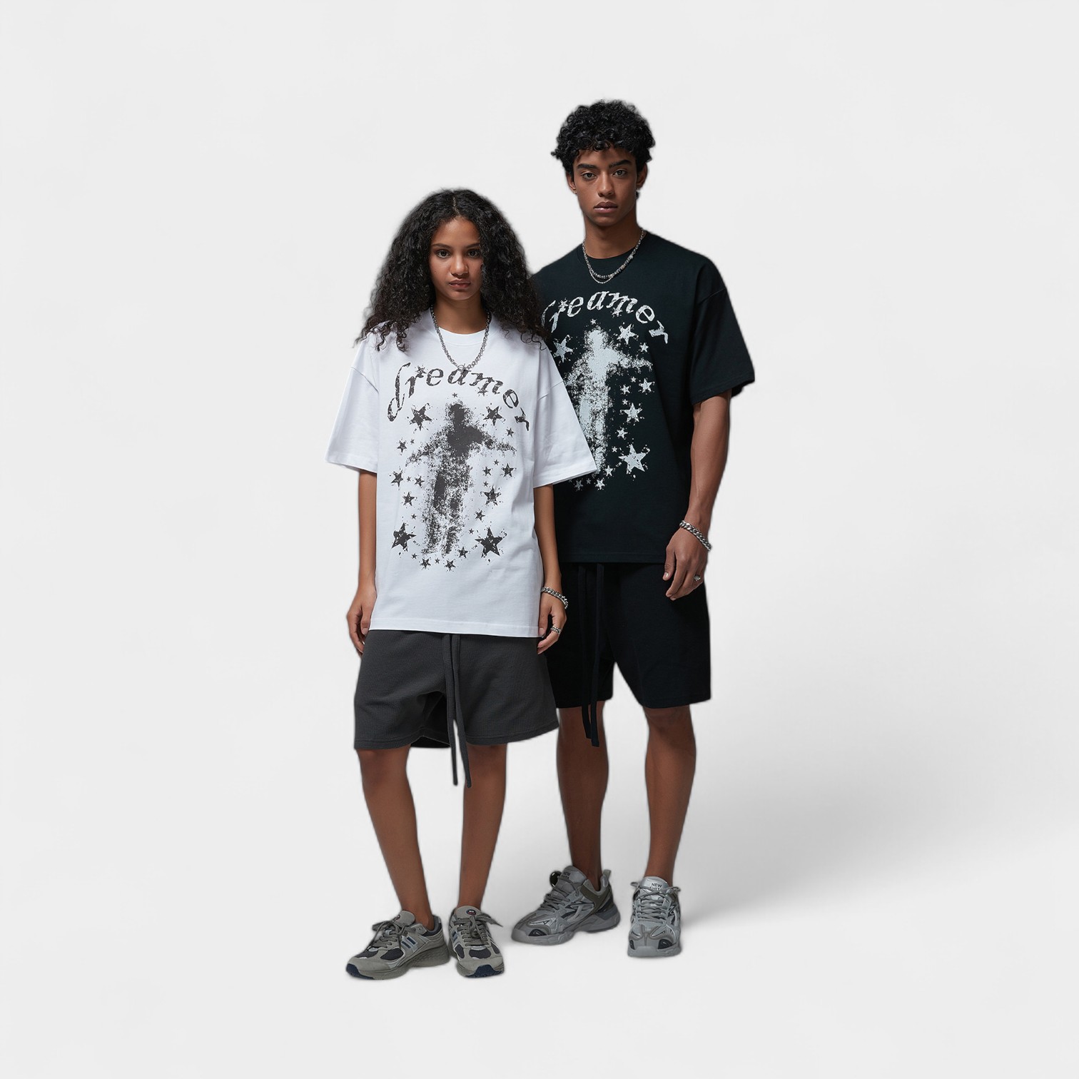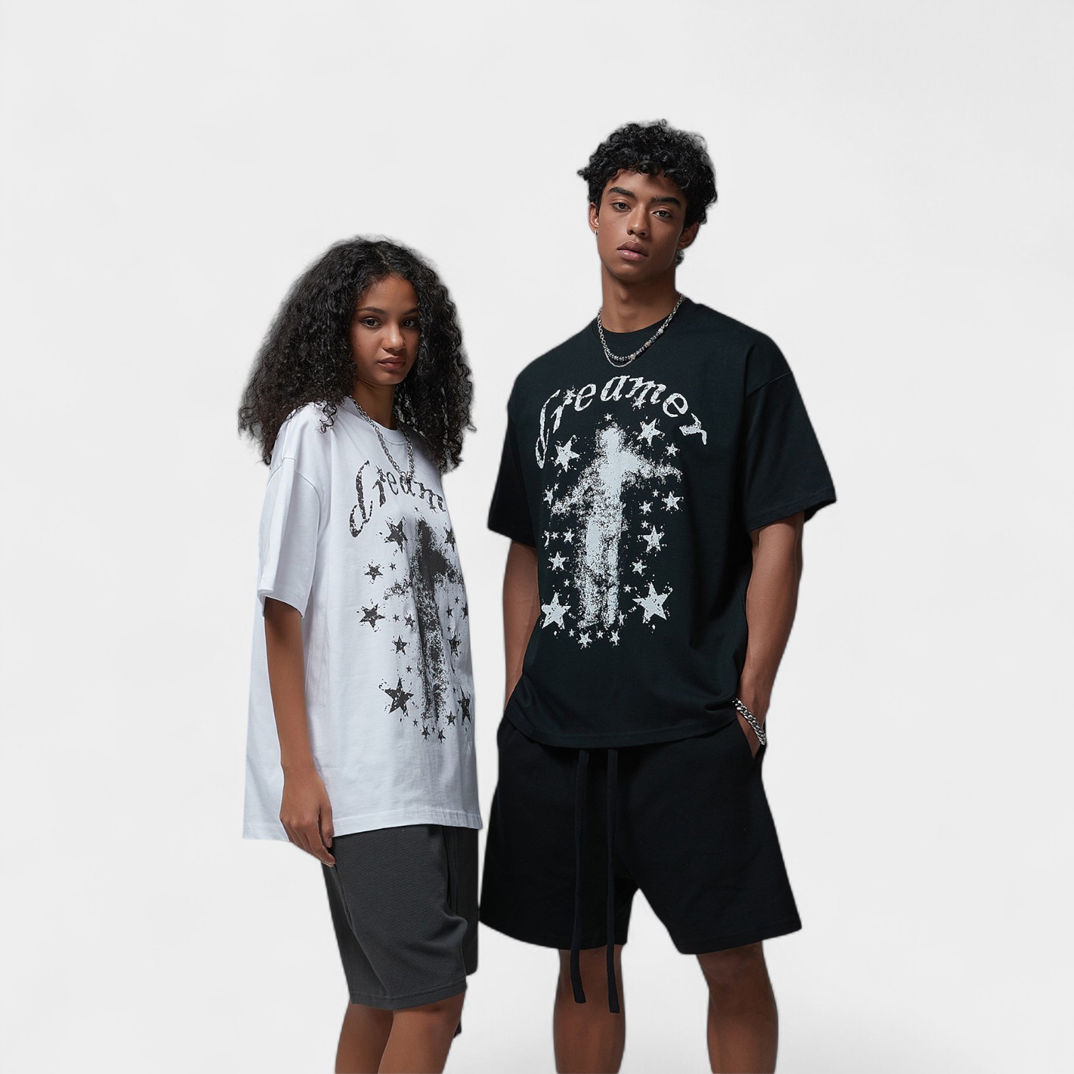 Dieses Unisex-Oversized-T-Shirt mit Rundhalsausschnitt verfügt über einen einzigartigen künstlerischen oder Textdruck auf weichem Stoff und ist perfekt für ein bequemes und stilvolles Statement. Es zeichnet sich durch Oversized-Passform und einen künstlerischen Druck für den praktischen täglichen Gebrauch aus.