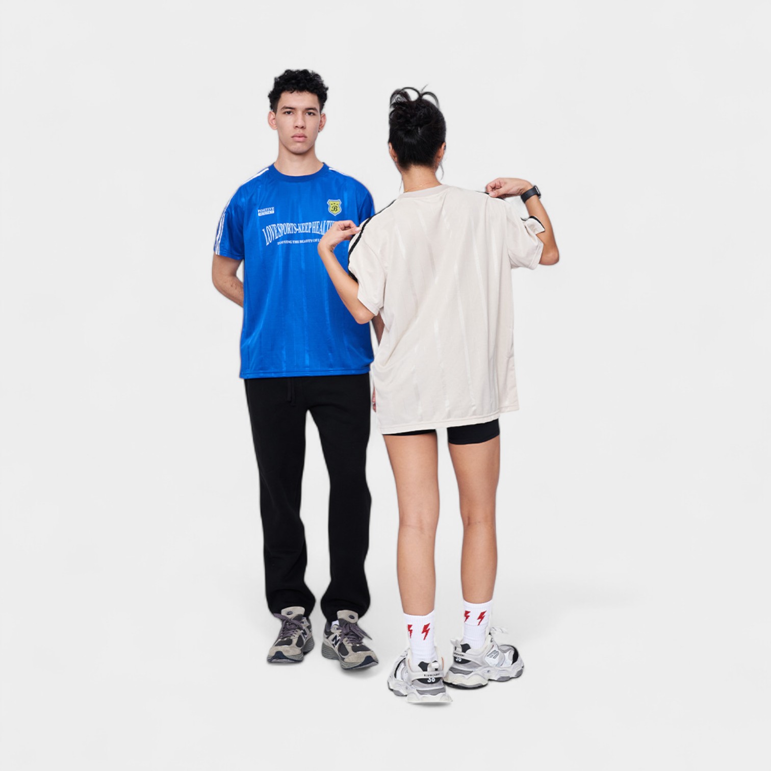 Dieses übergroße, gestreifte T-Shirt mit Rundhalsausschnitt bietet eine bequeme und stilvolle Unisex-Passform mit seinem weichen Stoff und den klassischen kurzen Ärmeln. Es verfügt über einen Oversized- und Text-Print für den praktischen täglichen Gebrauch.