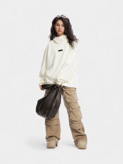 49,95 € inc. VatOversized women's hoodie with kangaroo pocket and drawstring hood.